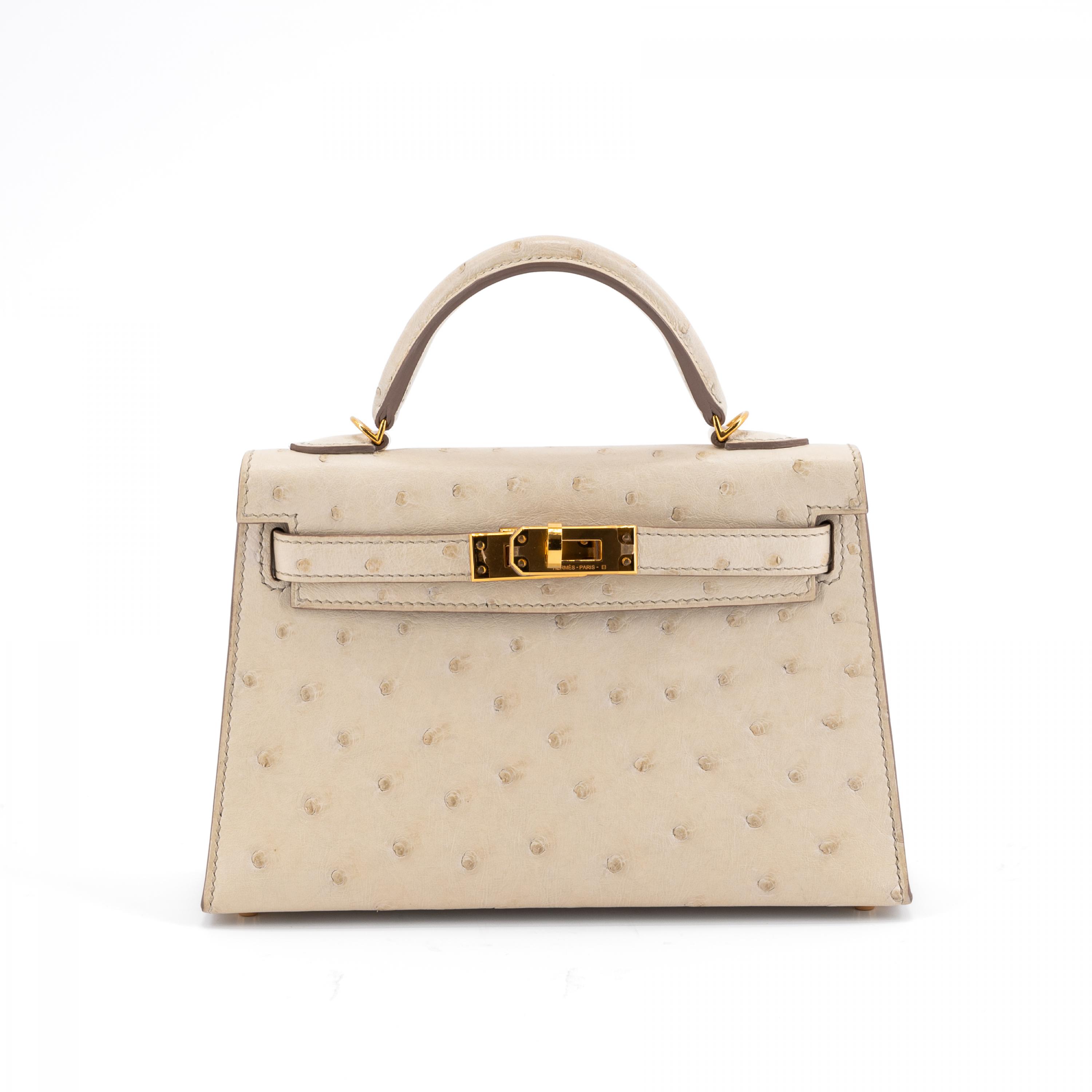 Material: Straußen-Leder 8L Beton, goldfarbene Beschläge.