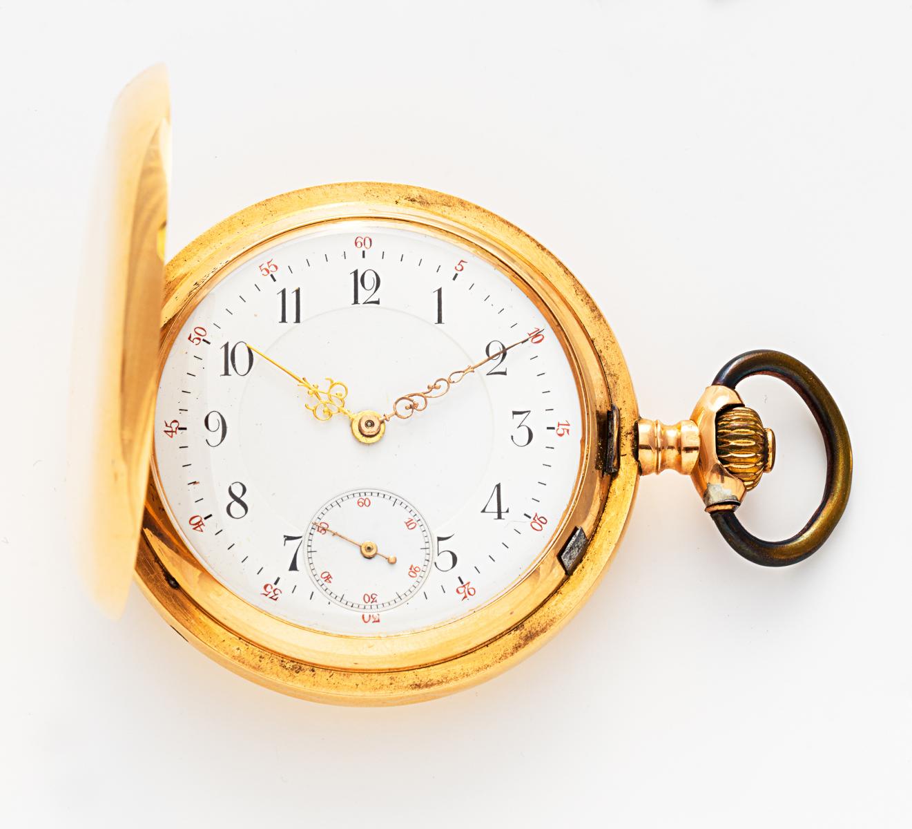 Gehäuse/Armband: 585/- Rotgold, gest., Zffbl. Email, Zeiger golden.