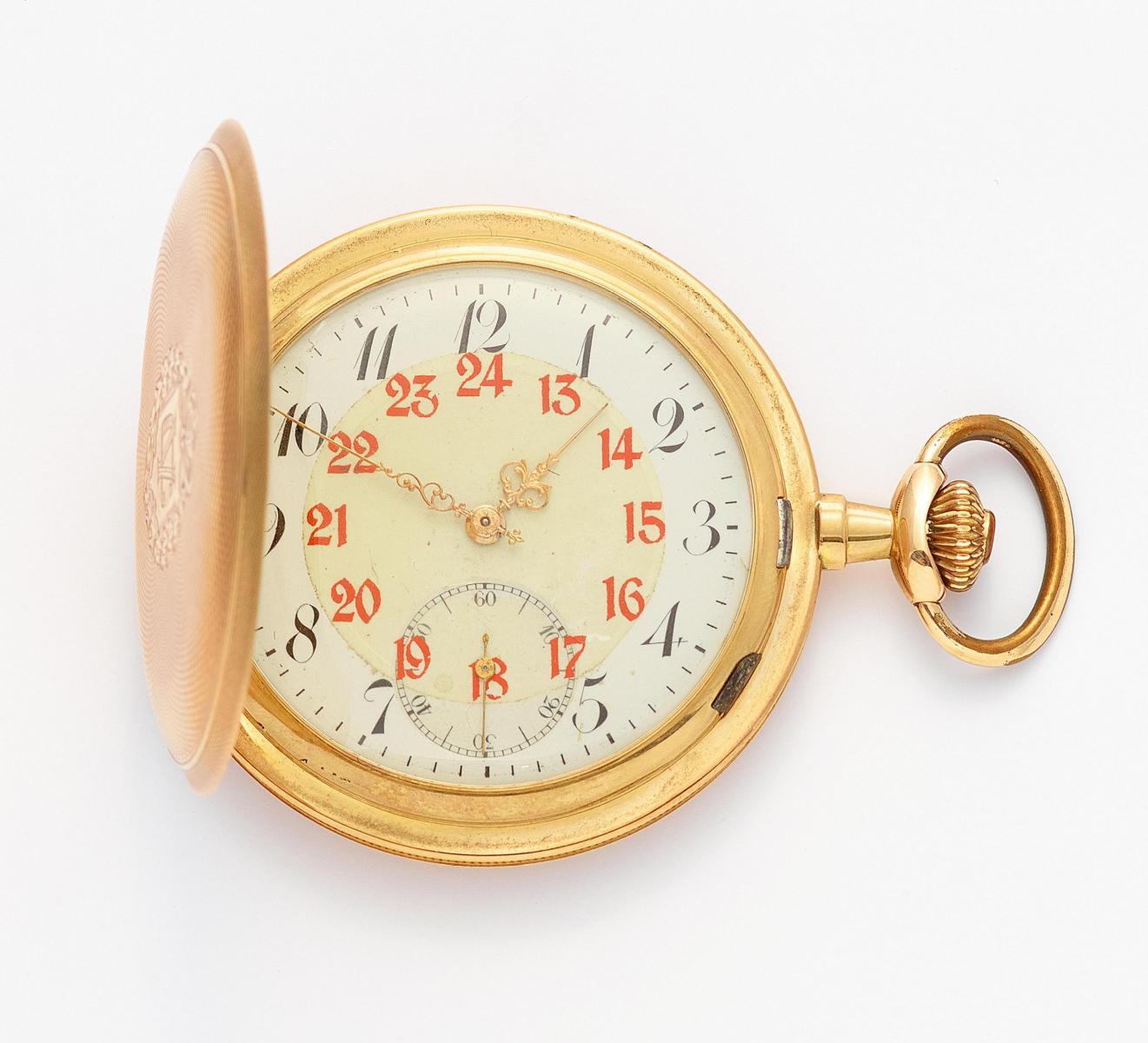 Gehäuse/Armband: 585/- Gelbgold, Zffbl. Email, Zeiger golden.