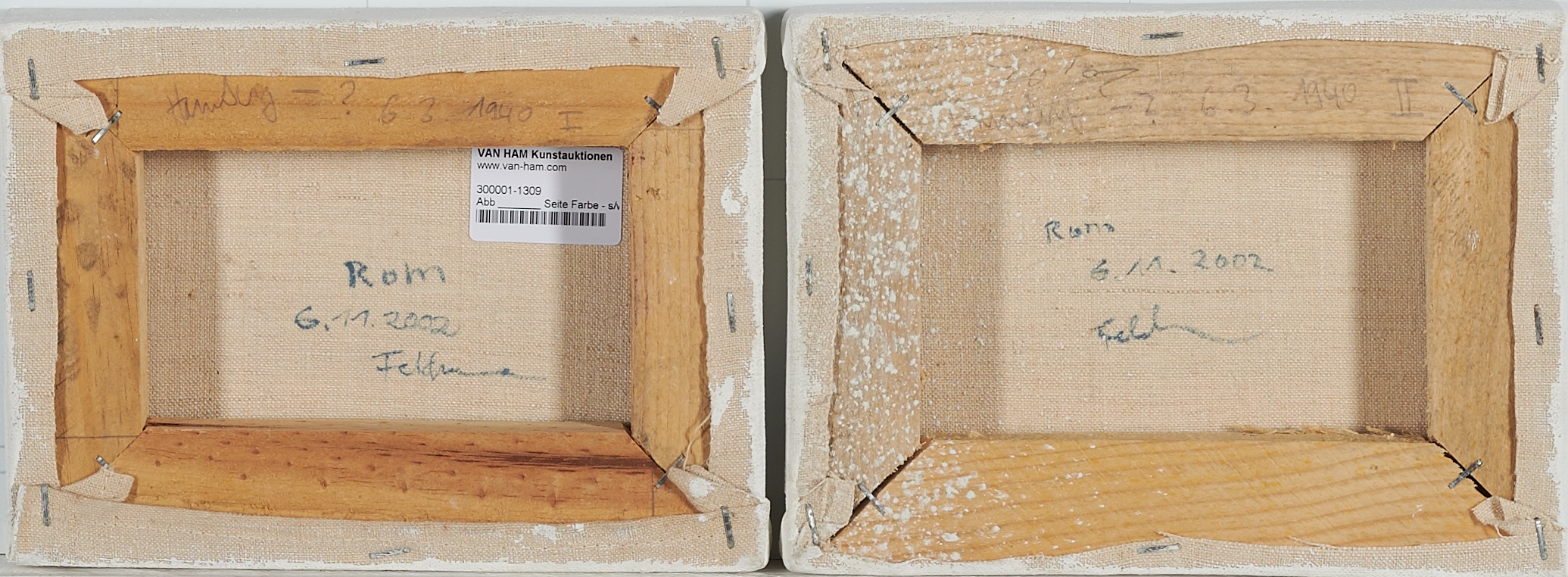 Bezeichnung: Jeweils signiert, datiert, betitelt und bezeichnet verso auf der Leinwand und auf dem Keilrahmen: Hamburg - ? 6.3.1940 I (bzw II) Rom 6.11.2002 Feldmann.