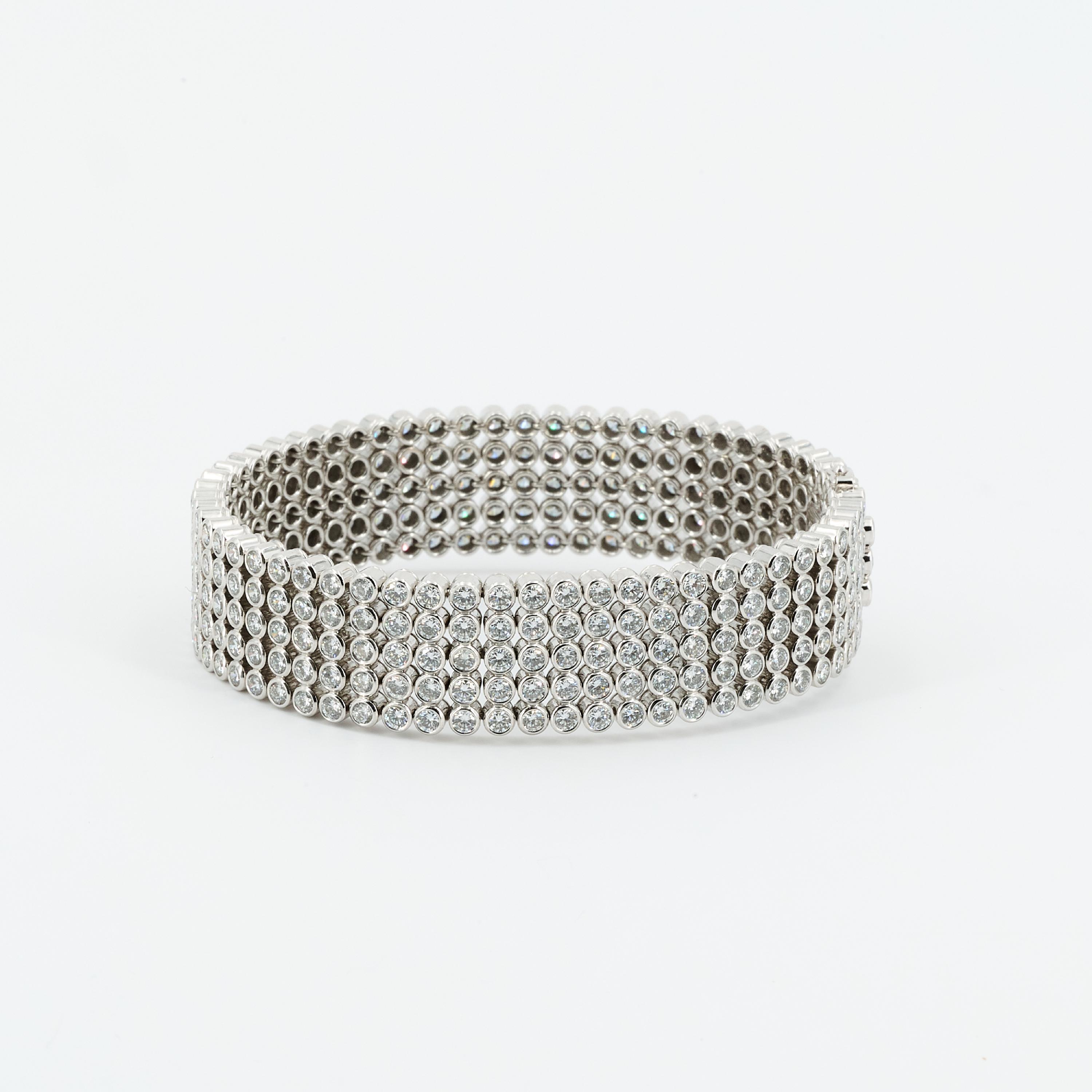 Beschreibung: Signiert "HORNEMANN". Hochwertig gearbeitetes Teppich-Armband mit fünfreihigem Diamantbesatz, das sich beim Tragen dem Arm anschmiegt.