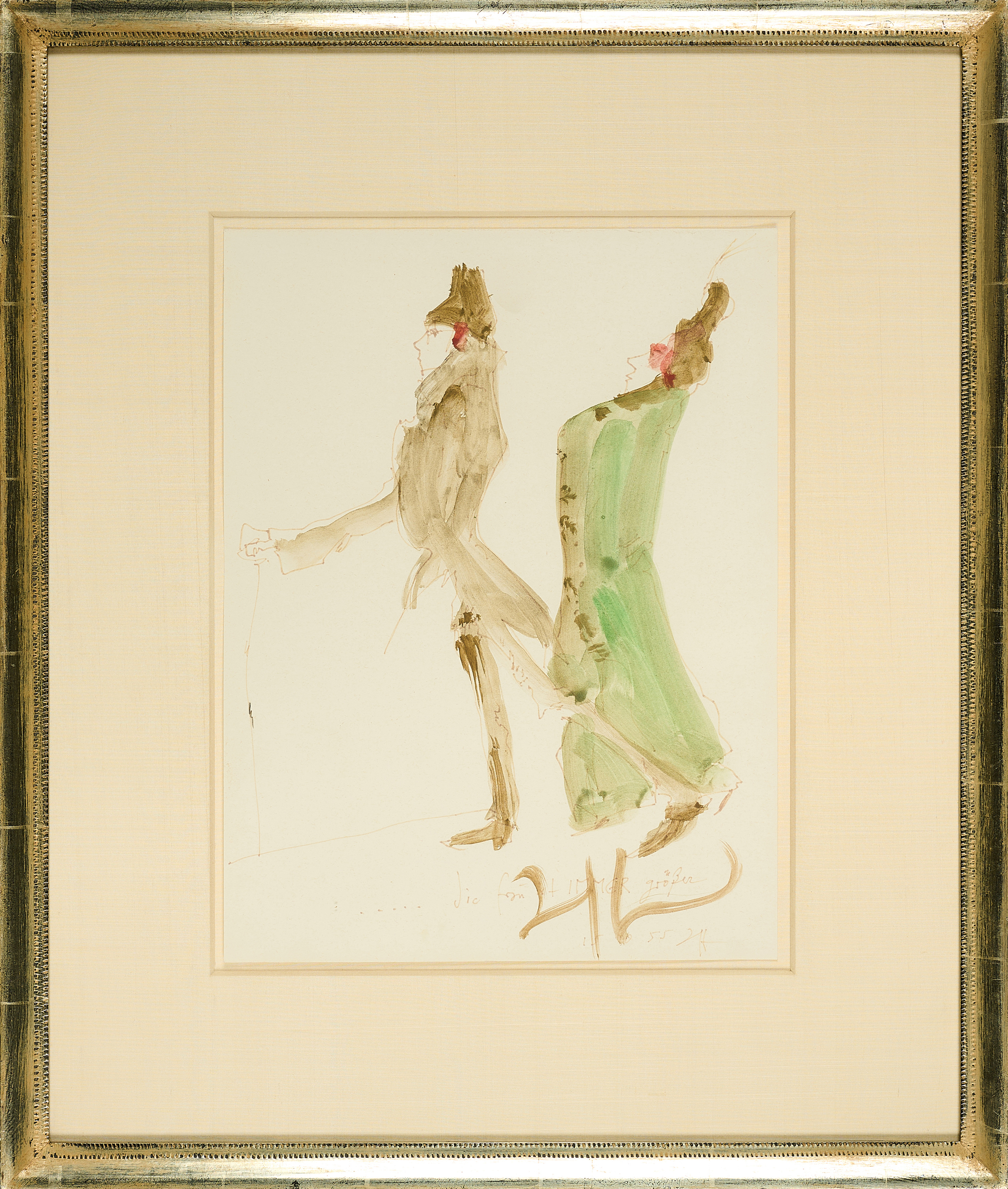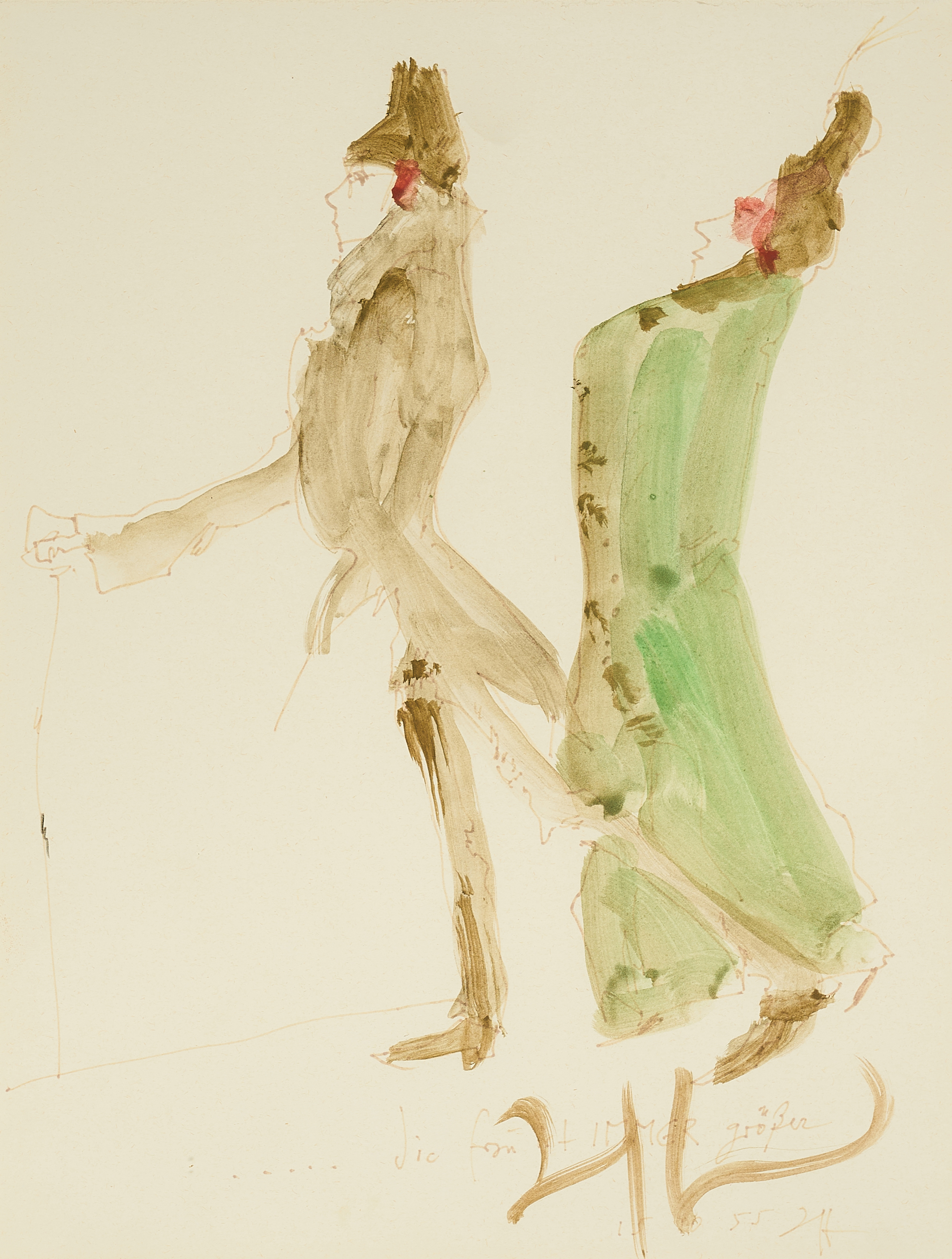 Bezeichnung: Betitelt, datiert und monogrammiert unten: ..... die frau ist IMMER größer 15 10 55 JH (Künstlersignet).