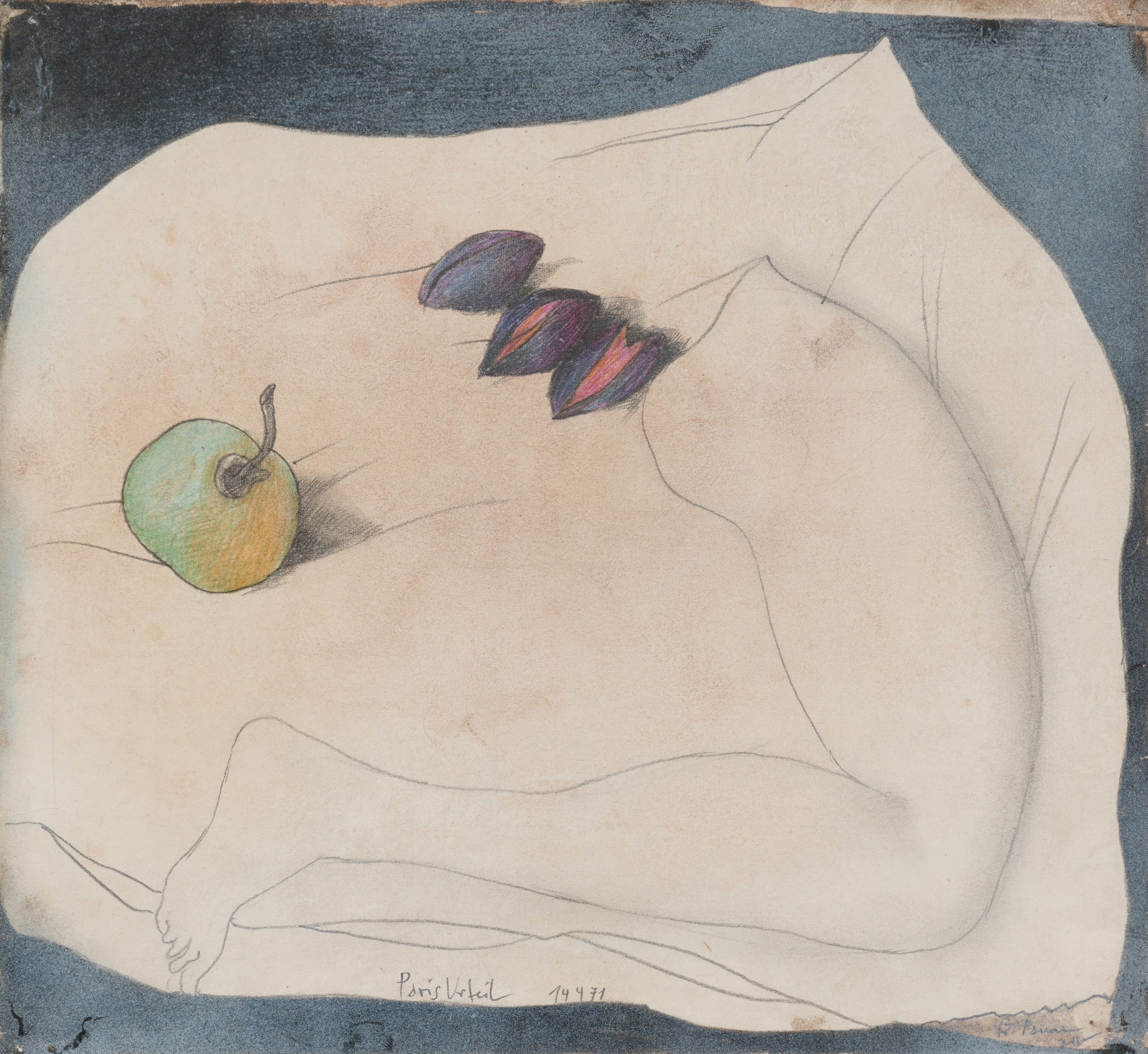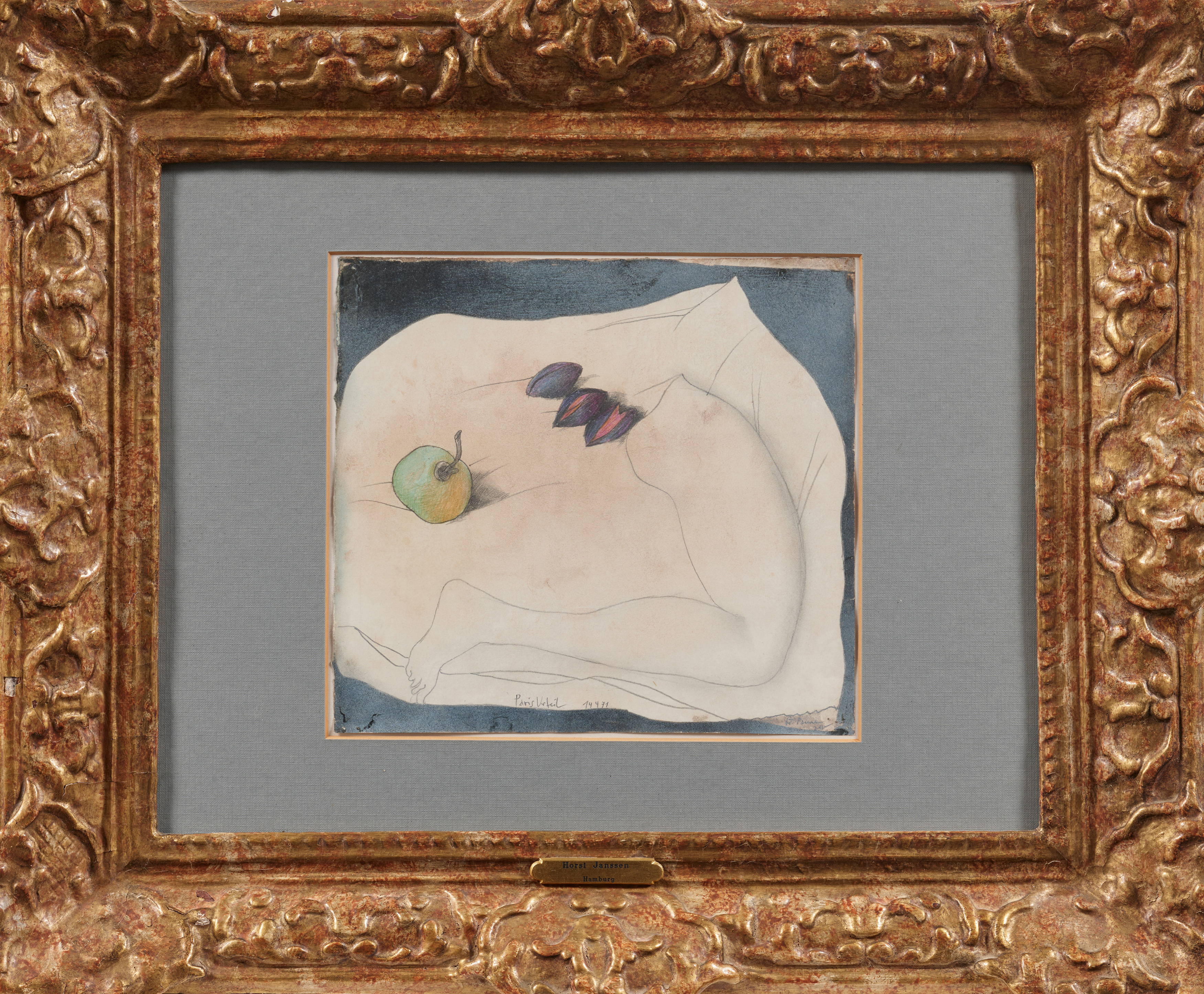 Bezeichnung: Betitelt und datiert unten Mitte: Paris Urteil 14 4 71. Sowie monogrammiert unten rechts: JH. Hier zudem gewidmet.