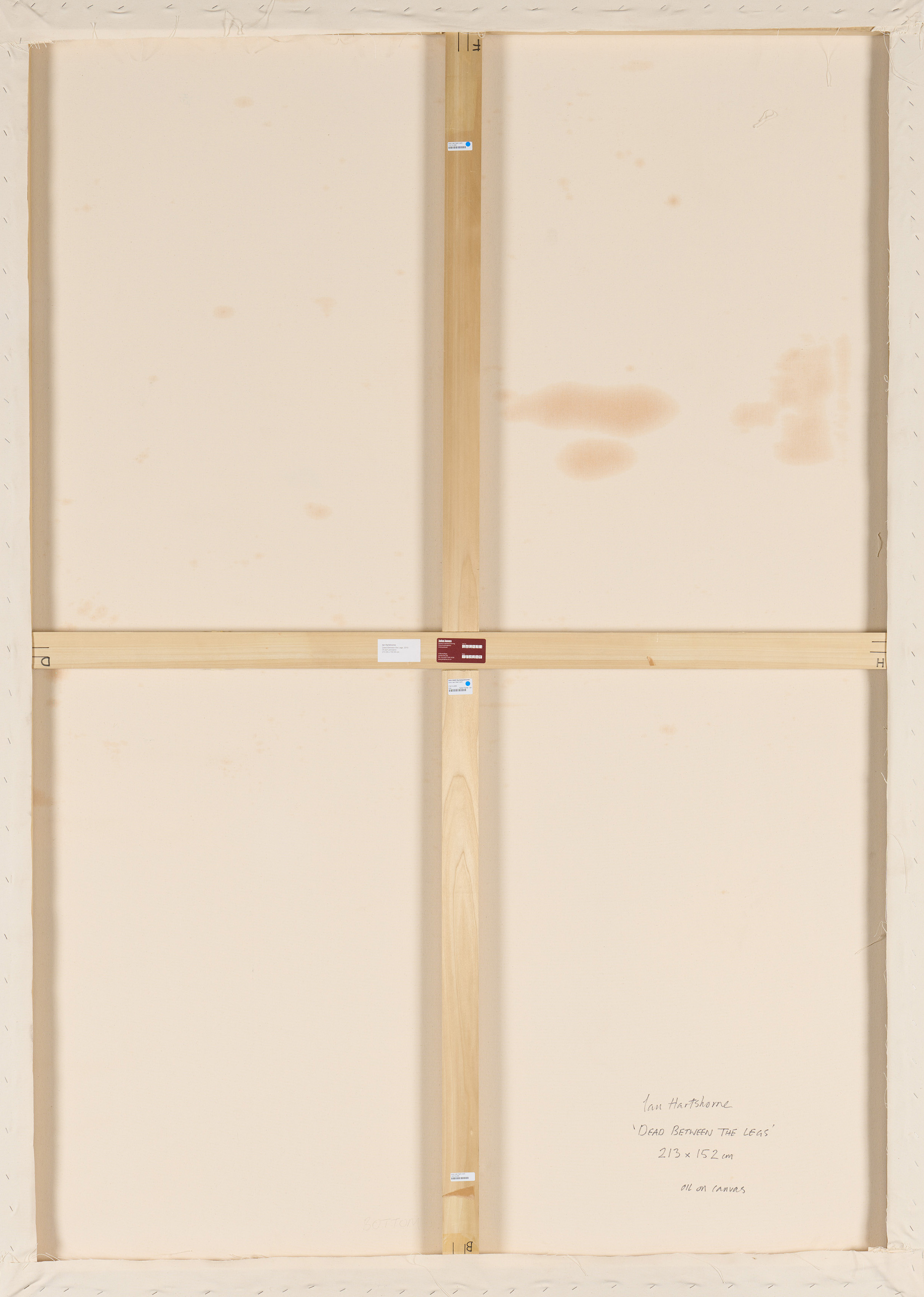 Bezeichnung: Signiert und betitelt verso unten rechts: Ian Hardshorne "DEAD BETWEEN THE LEGS". Hier zudem mit Werkangaben versehen.