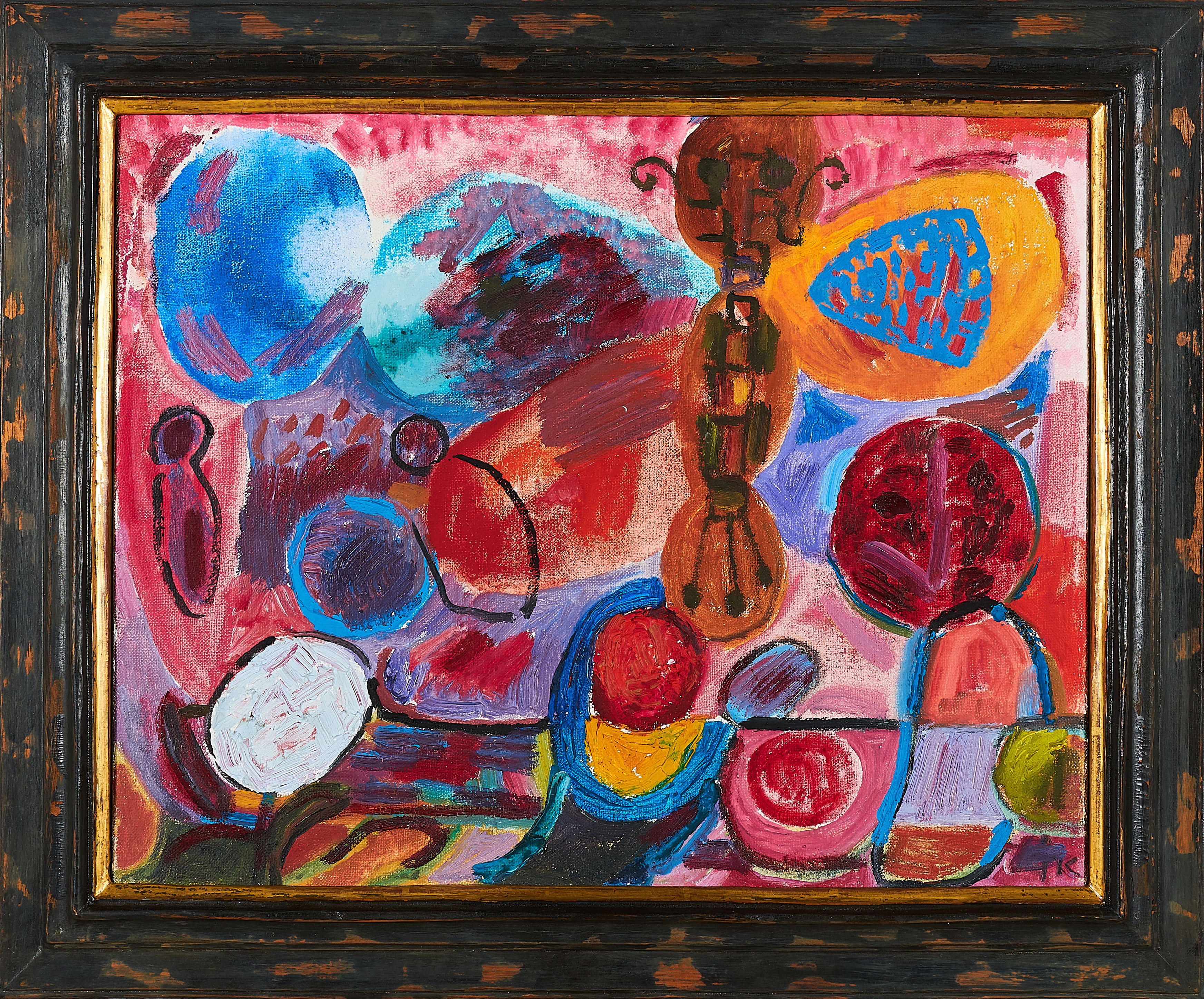 Vereinzelt minimales Krakelee (werkimmanent). Ansonsten sehr guter Zustand. Im Rahmen beschrieben.
