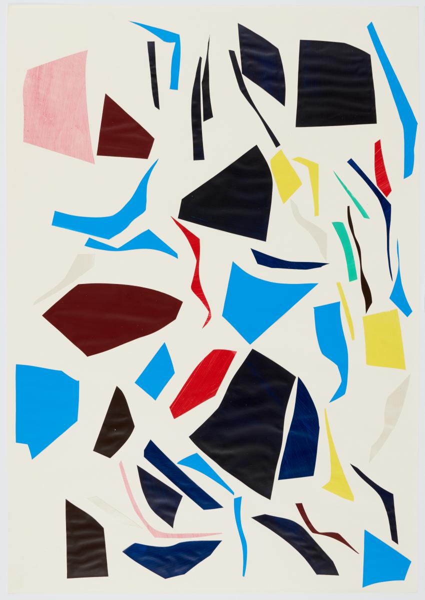 Technik: Collage (mit Acryl bemalte Papiere) auf Papier.