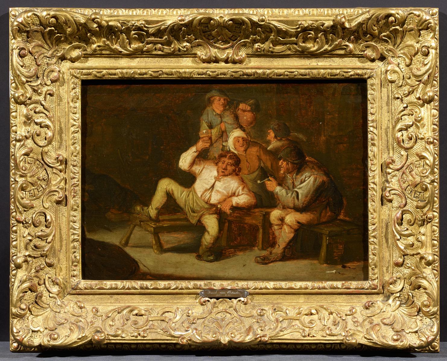 Umkreis. Bauern im Wirtshaus. Reste einer Bezeichnung. unten mittig auf Öl. Holz x 34,5 Rahmen: