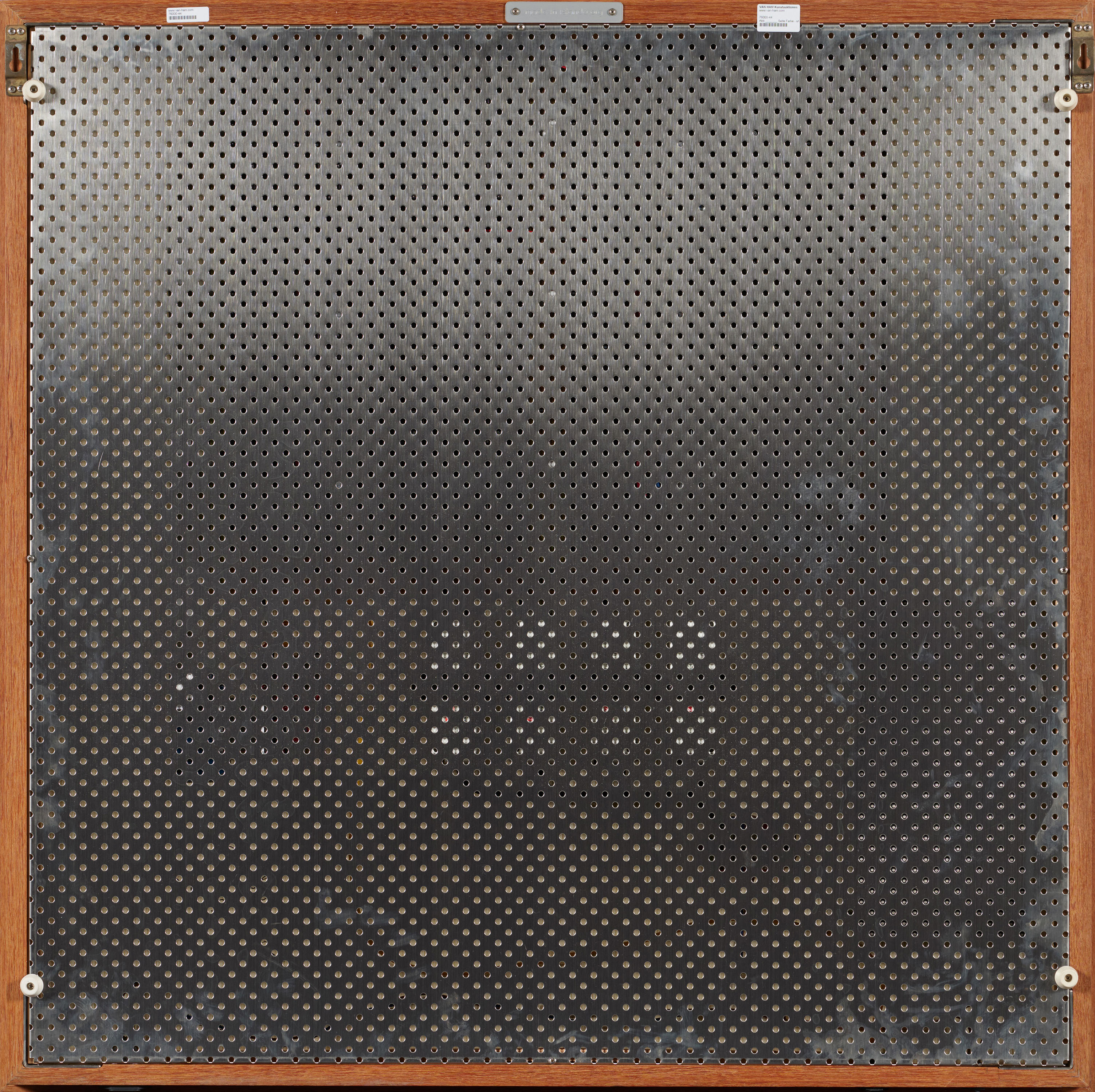 Technik: RGB LED Display, Acryl auf Plexiglas, Vietnamesisches Leinen, eingefasst in handgegossenem Harz, Teakholz-Rahmen.