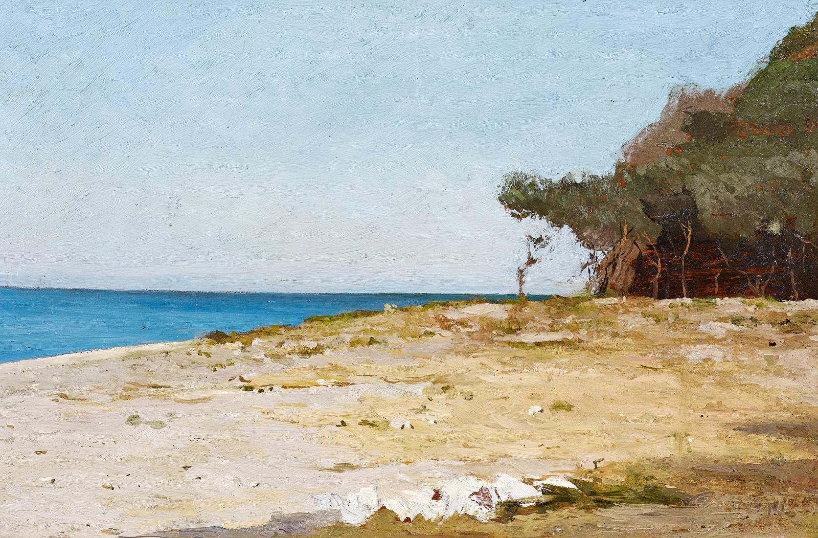 An der Küste. Öl auf Holz. 20 x 31cm. Rahmen.