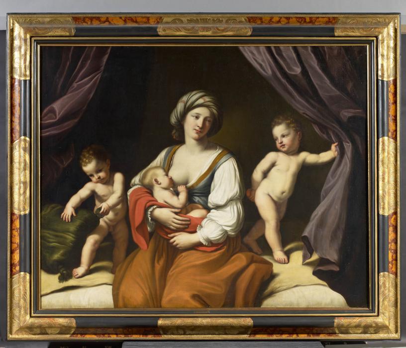 Caritas. Provinienz: Privatsammlung, NRW. Öl auf Leinwand. Doubliert. 138 x 172cm. Rahmen.