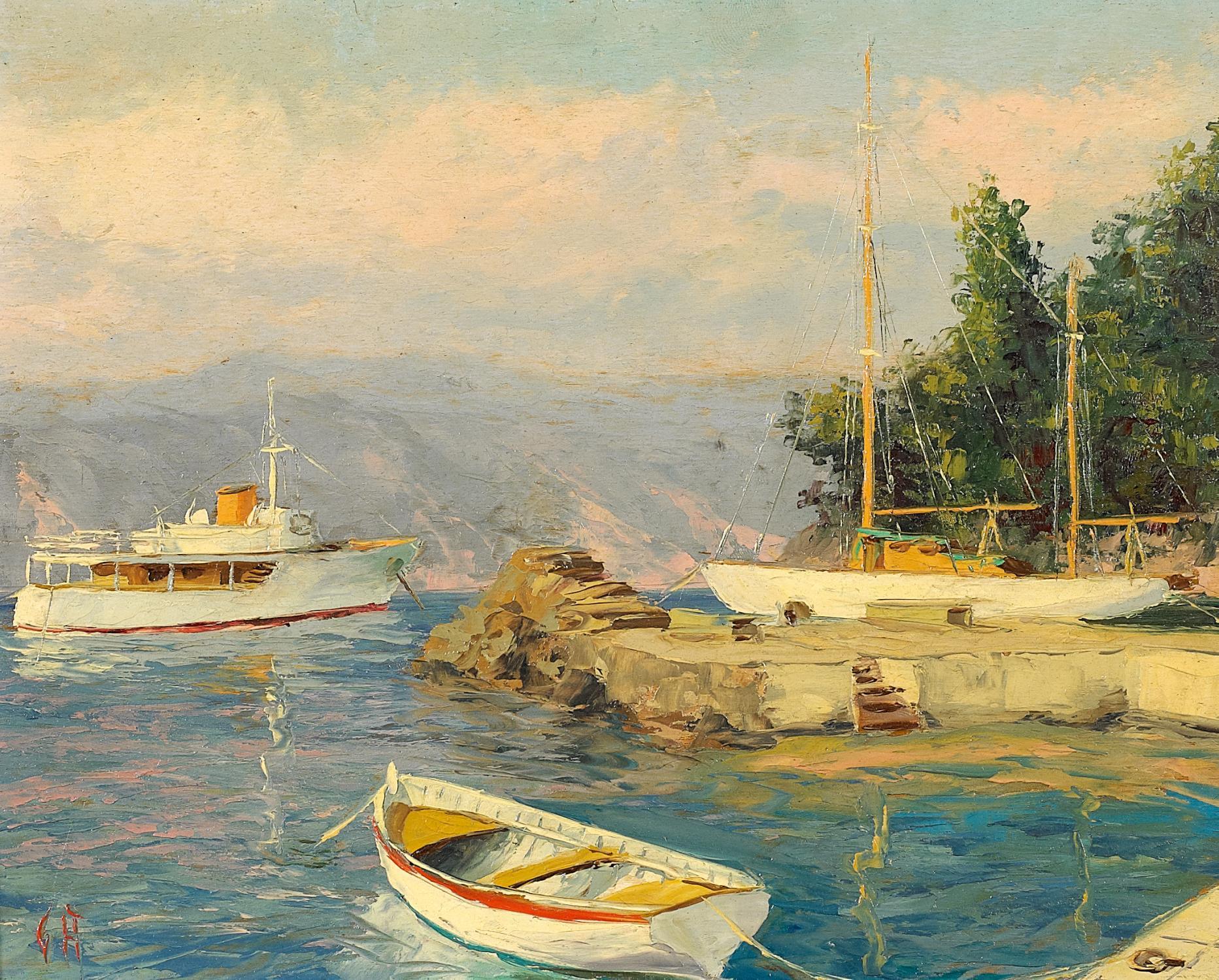 Hafen von Portofino. Unten links: G.H. Öl auf Karton. 24 x 30cm. Rahmen.
