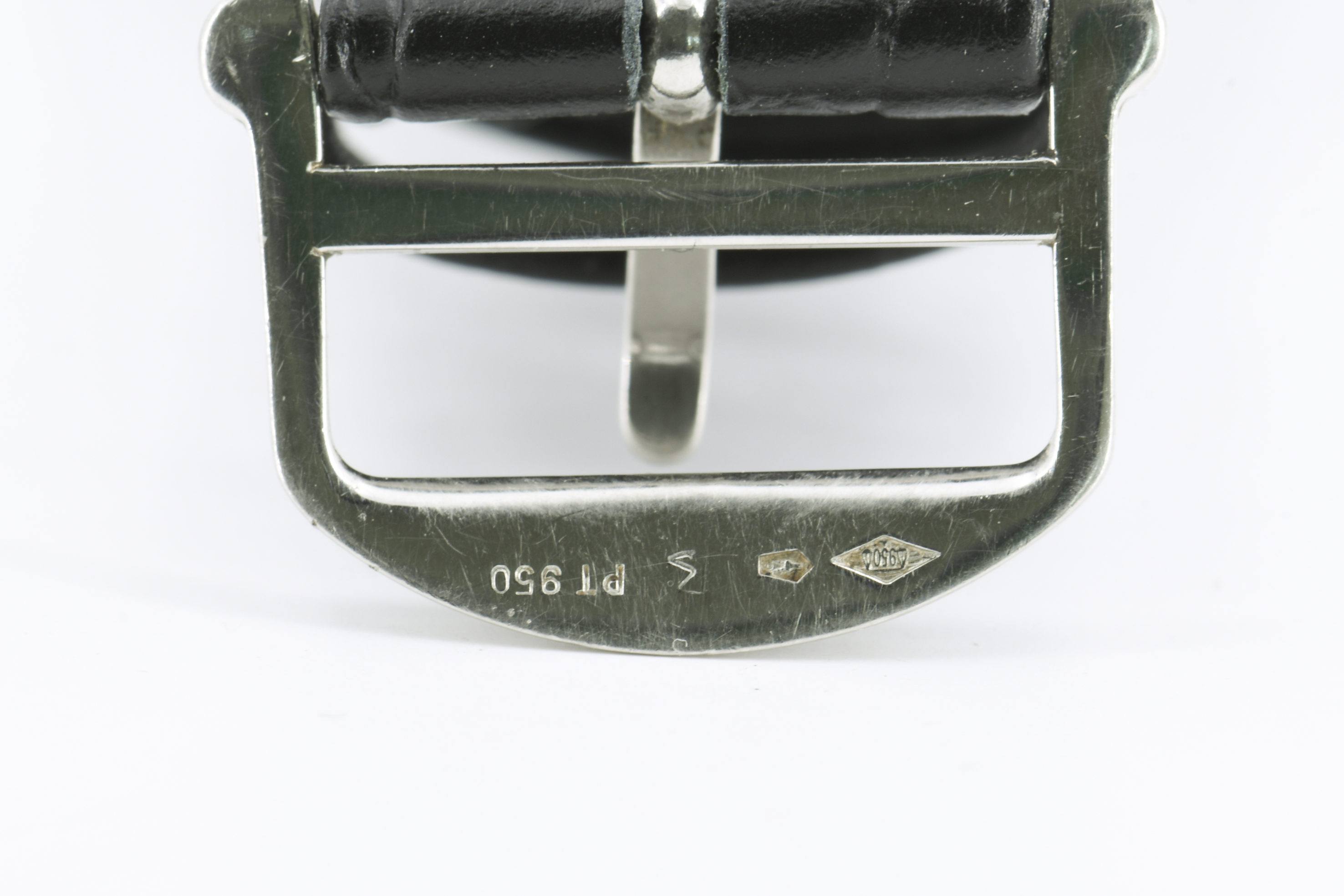 Gehäuse/Armband: 950/- Platin, neues Lederband mit orig. Platin-Dornschließe, Zffbl. weiß mit silbernen Indexen und Tritium, Totalisatoren auf "12","9" und "6" Uhr.