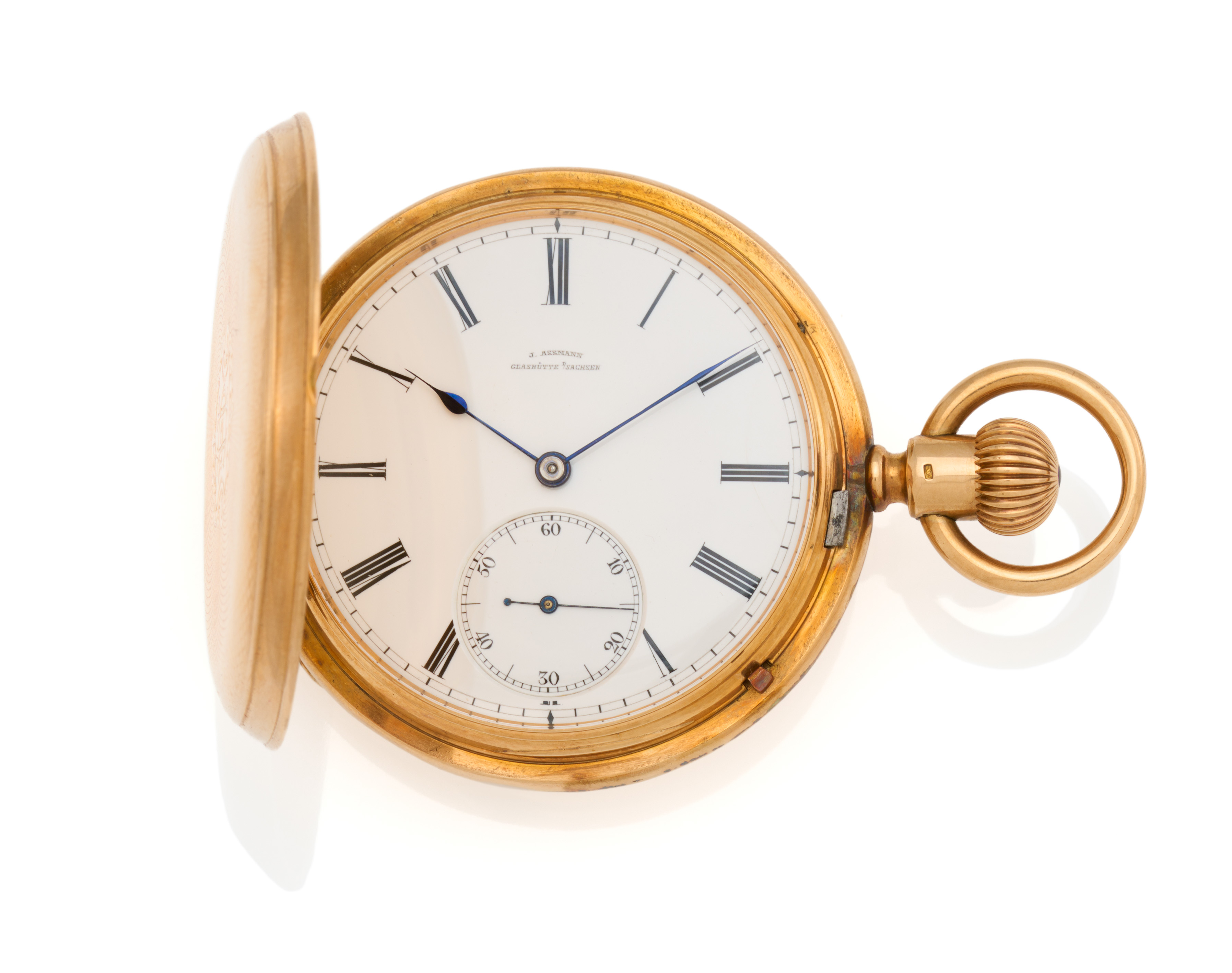 Beschreibung: 2-Zeiger-Taschenuhr mit dezentraler Sekunde bei "6" Uhr. Box und Papiere anbei.