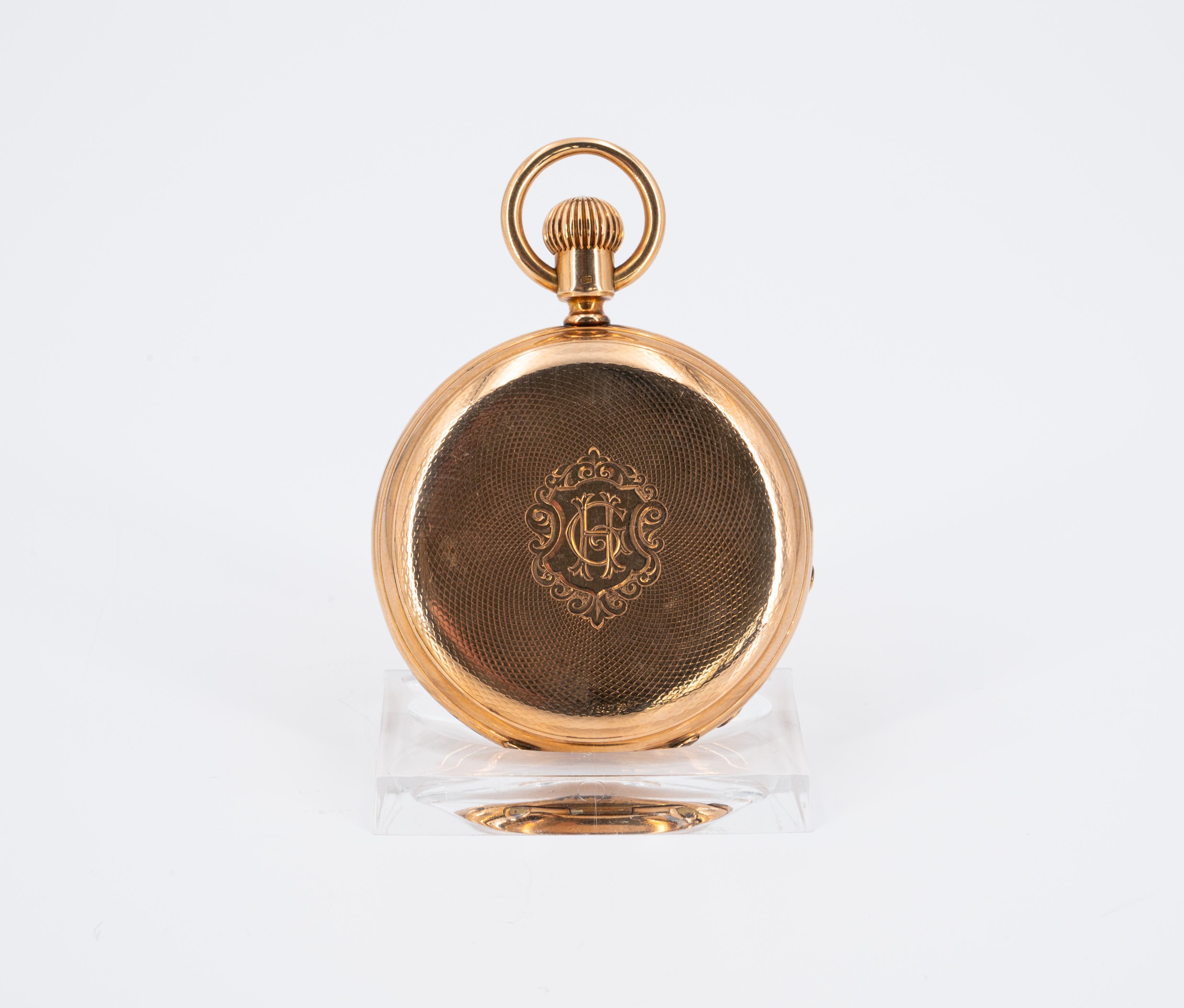 Gehäuse/Armband: 585/- Rotgold, Email-Zffbl. weiß, Indizes schwarz, Zeiger gebläut.