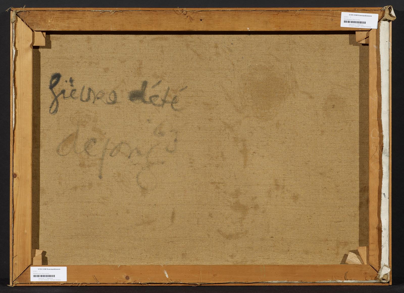 "Fièvre d'été". 1969. Öl auf Leinwand. 65,5 x 91cm. Signiert unten rechts: dejong. Datiert und nochmals signiert verso: 69 dejong. Darüber betitelt. Atelierleiste.