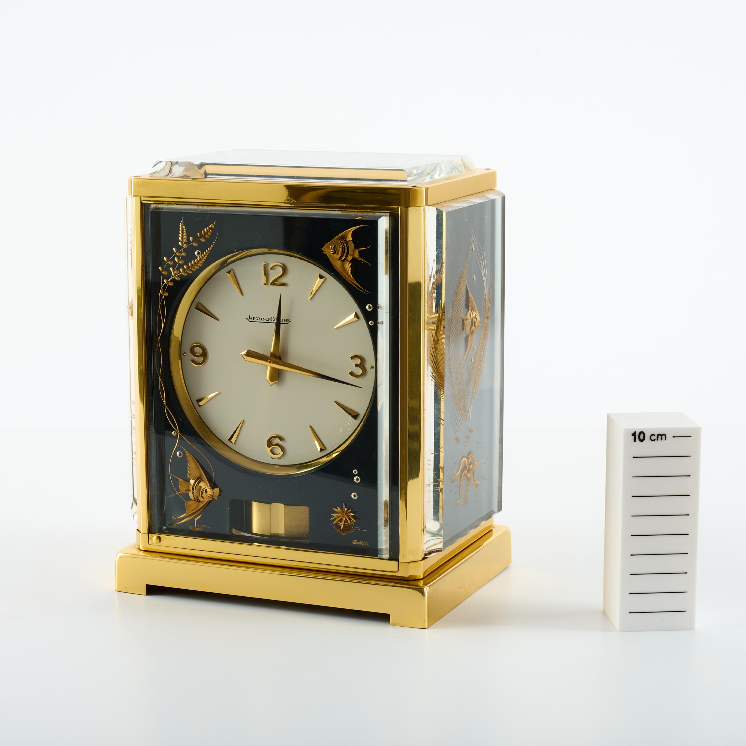 Technik: Messing vergoldet, Plexiglas mit dreidimensionalen Meeresmotiven wie Fischen, Quallen etc. schwarz hinterlegt.