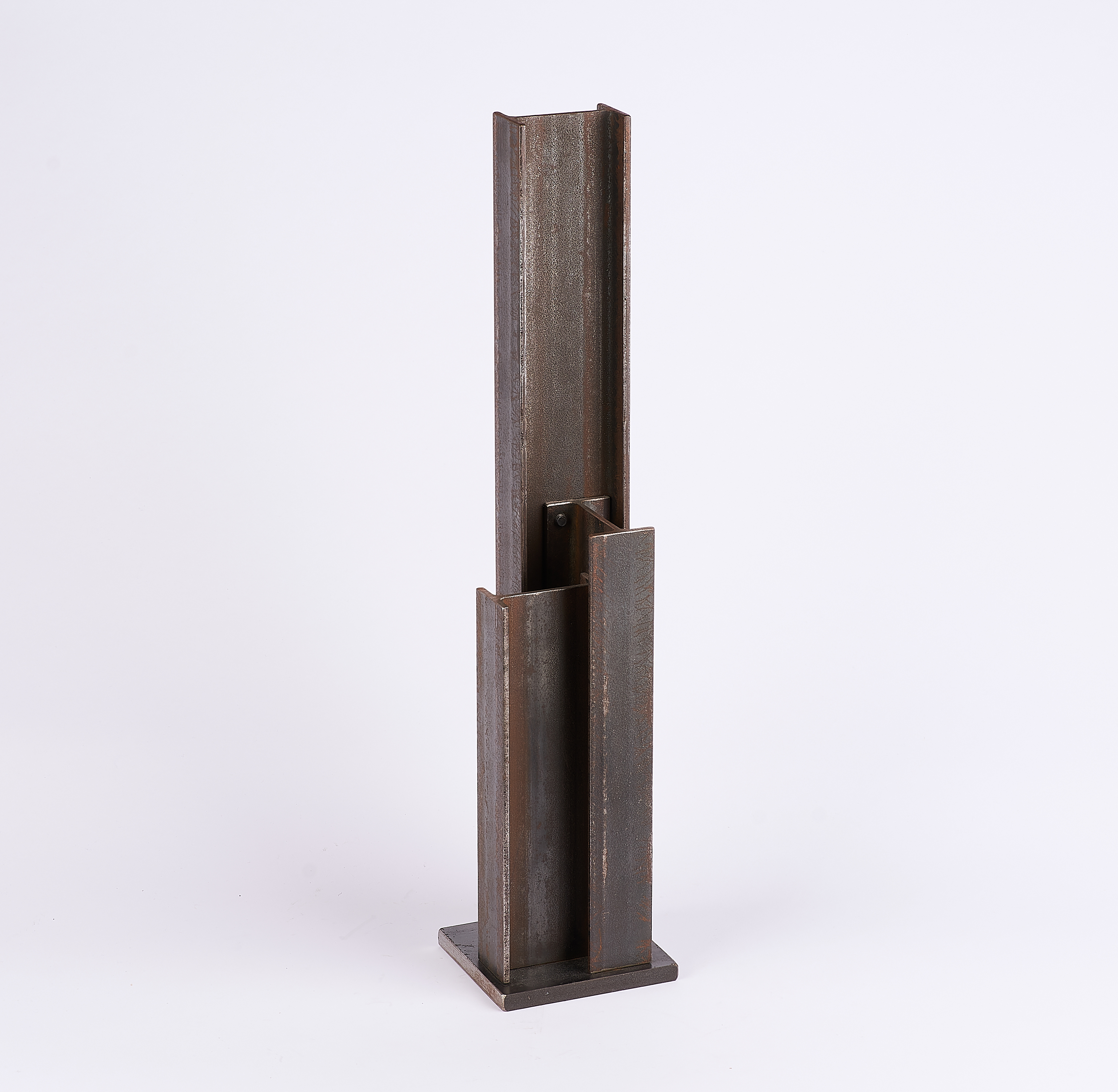 Korrosionsspuren und raue Oberfläche werkimmanent. Minimale Staubablagerungen. Vereinzelt minimale Verschmutzungen. Leichte Kratzspuren und Bestoßungen an der Unterseite und den Kanten des Sockels. Ansonsten sehr guter Zustand.