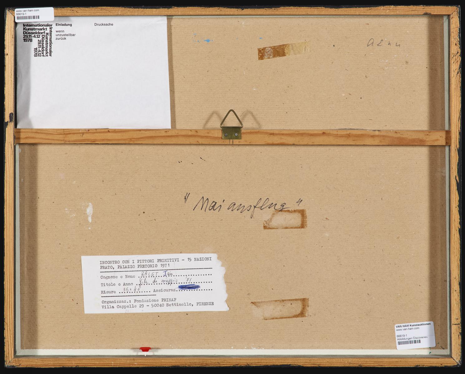Ausstellungen: Palazzo Pretorio, Florenz 1971 (Aufkleber).
