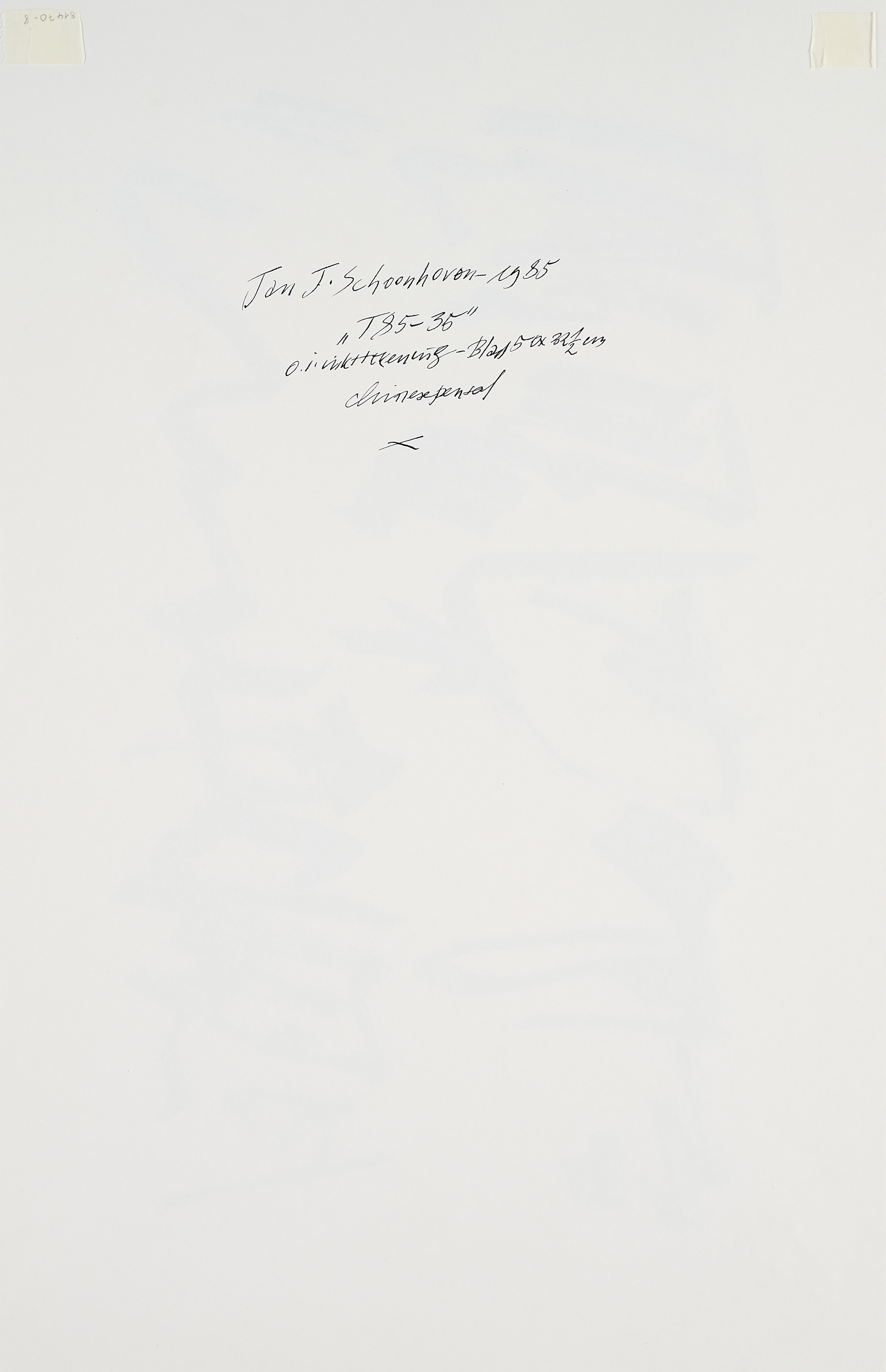 Bezeichnung: Signiert und datiert unten rechts: Schoonhoven 1980. Sowie betitelt unten links: T 85-35. Sowie signiert, datiert und betitelt verso. Jan J. Schoonhoven - 1985 "T 85-35". Hier zudem mit Werkangaben.