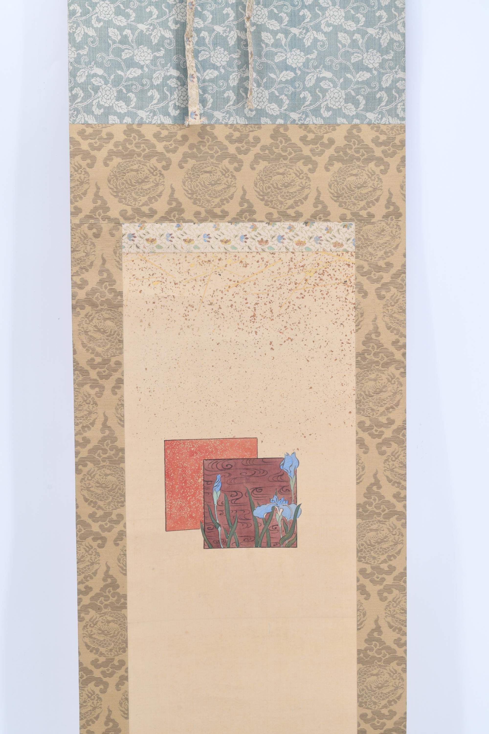 Technik: Tusche, Farben und Gold auf Seide. Aufschrift und Siegel. Beschrifteter Holzkasten.