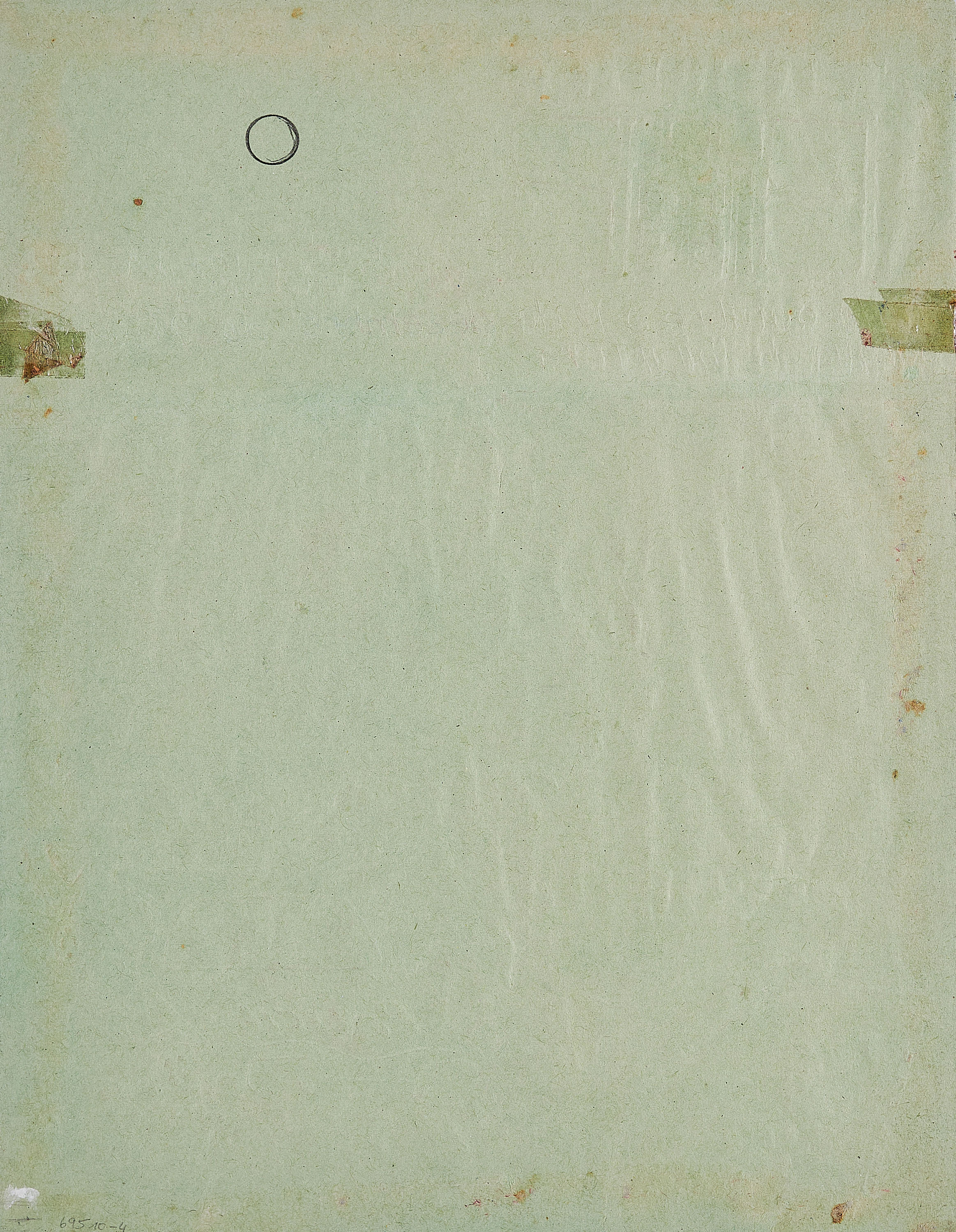 Blatt arbeitsbedingt gewellt. Verso Klebereste an den Randbereichen. Ansonsten befindet sich die Arbeit in einem sehr guten Zustand.