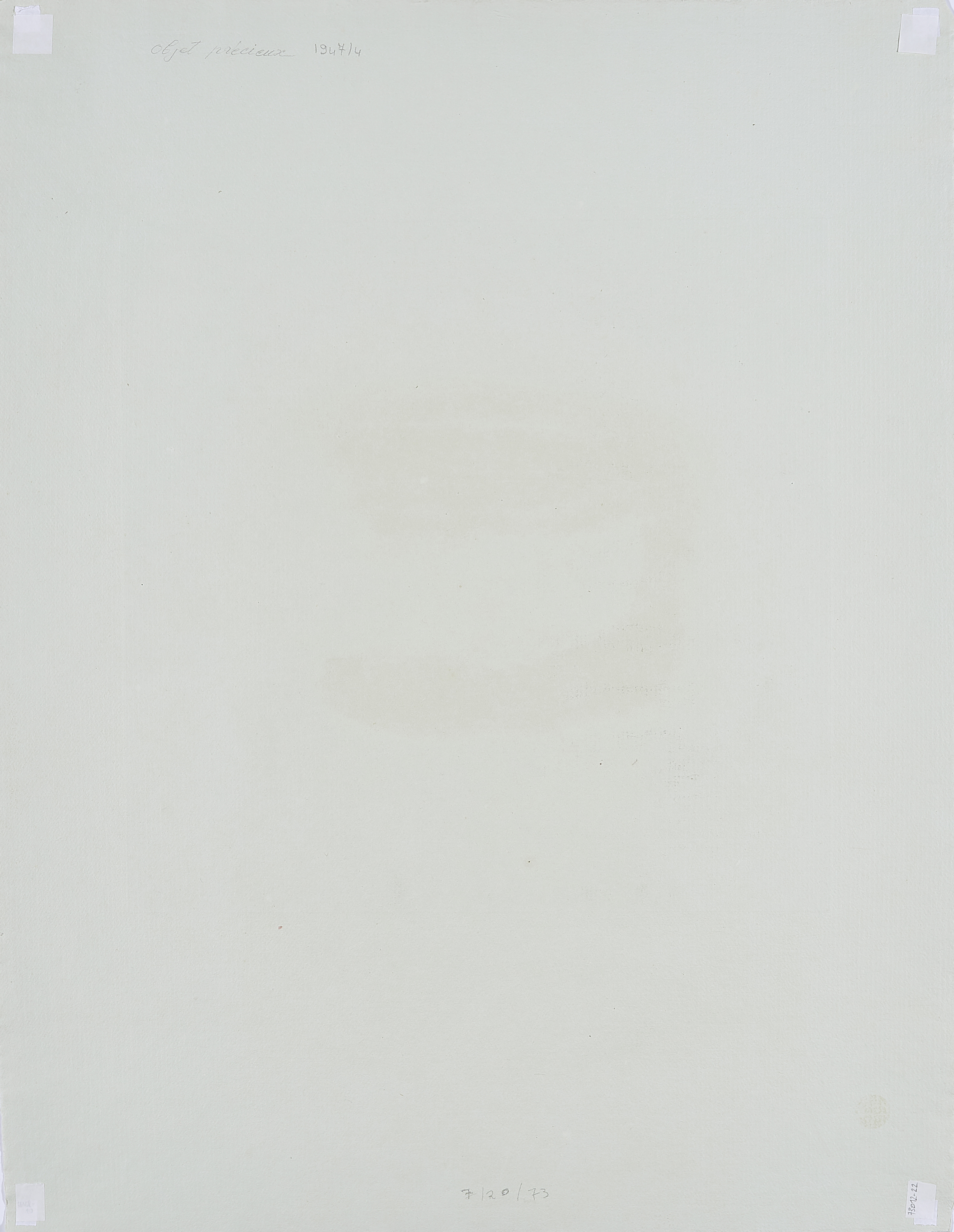 Minimale Verschmutzung am rechten Randbereich mittig. Verso Reste alter Montierung in den Randbereichen. Ansonsten befindet sich das Blatt in einem sehr guten Zustand.