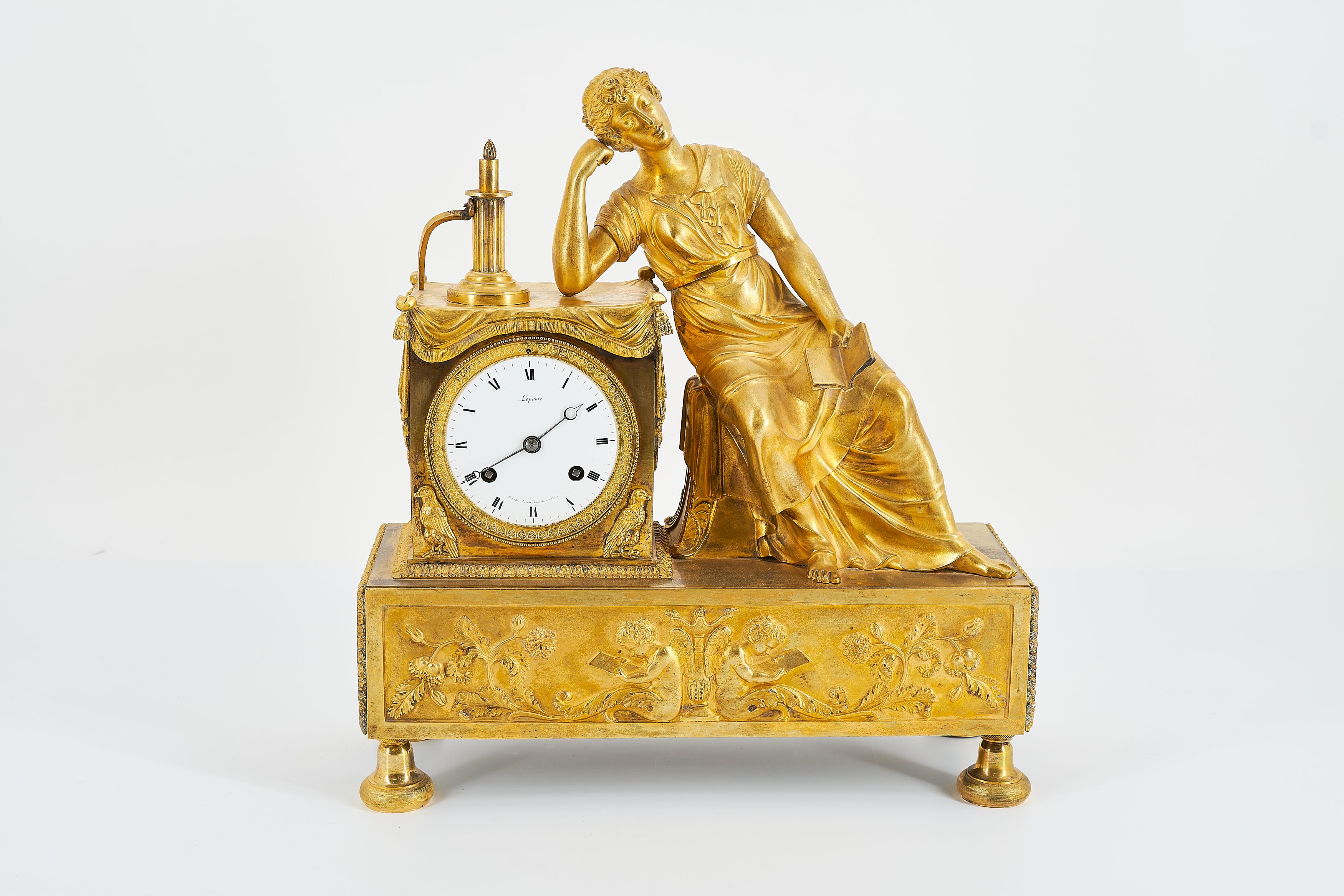 PENDULE MIT SCHLAFENDER DAME EMPIRE.