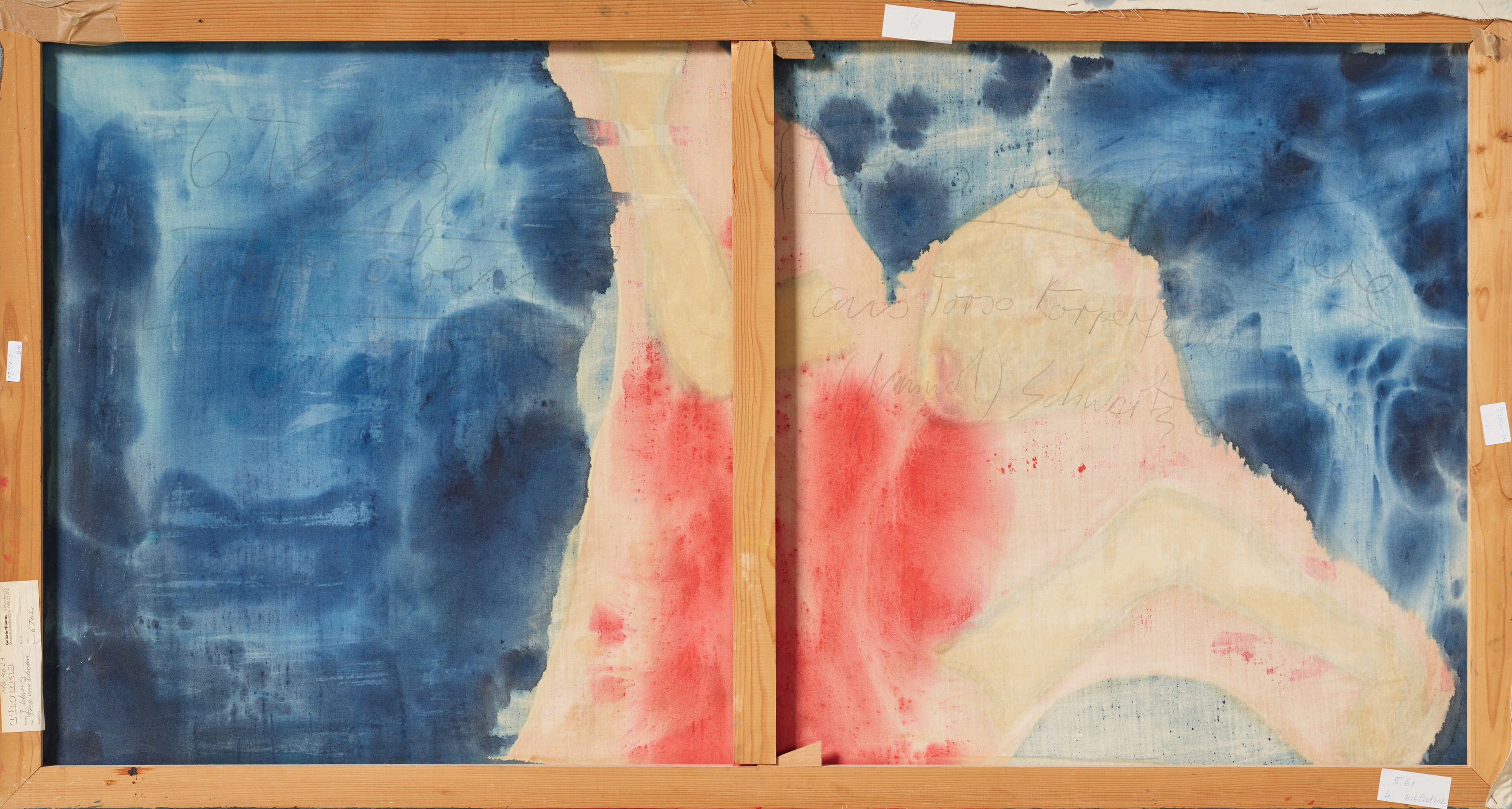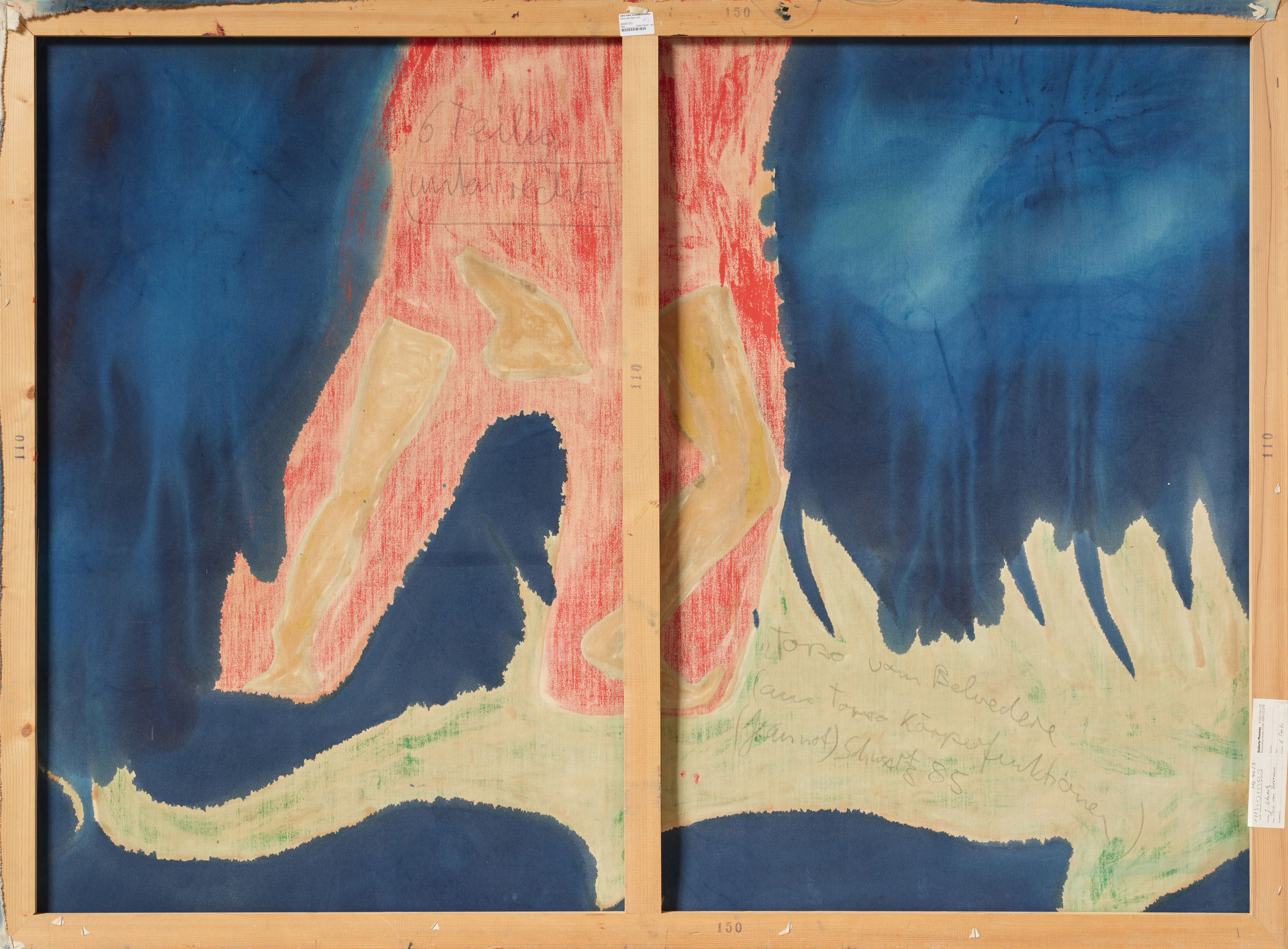 Bezeichnung: Jeweils betitelt, signiert und datiert verso oben rechts: "Torso von Belvedere" (aus Torso-Körperfunktionen) (Jeannot) Schwartz 85. Zudem bezeichnet verso oben links: 6-Teilig! sowie mit der entsprechenden Position in der Anordnung der Leinwände.