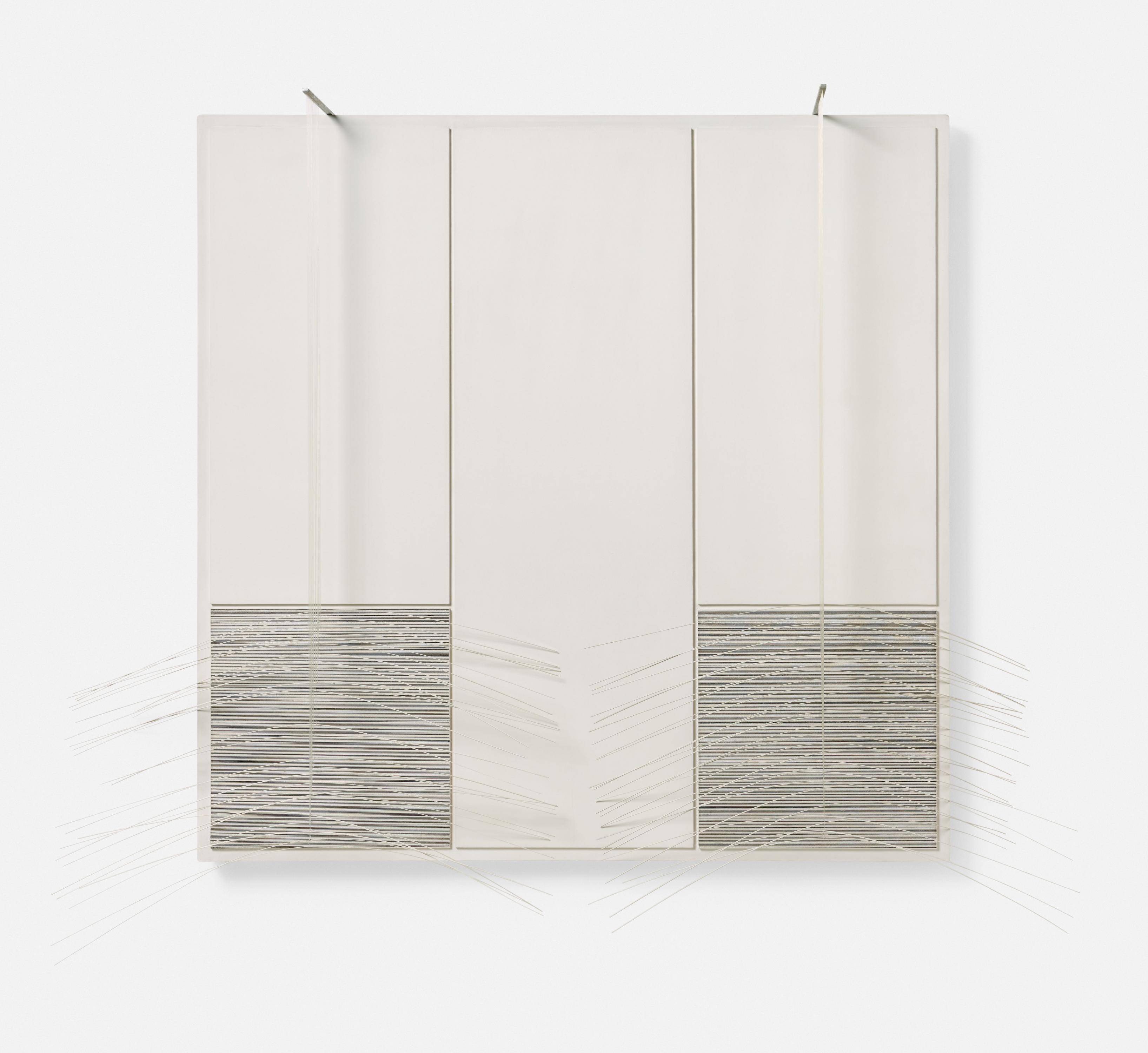 Bezeichnung: Betitelt, signiert und datiert verso oben rechts: "DOUBLE BLANC" Soto 1967. Zudem mit Richtungsangabe.