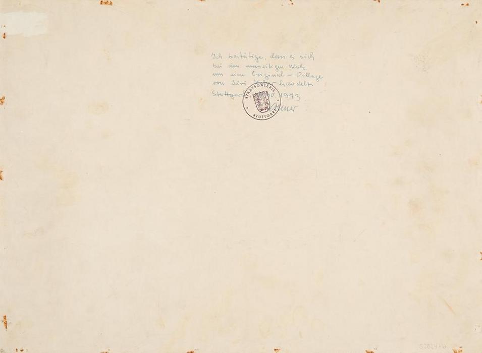 Verso Bestätigung der Staatsgalerie Stuttgart (mit Stempel) von 1973.