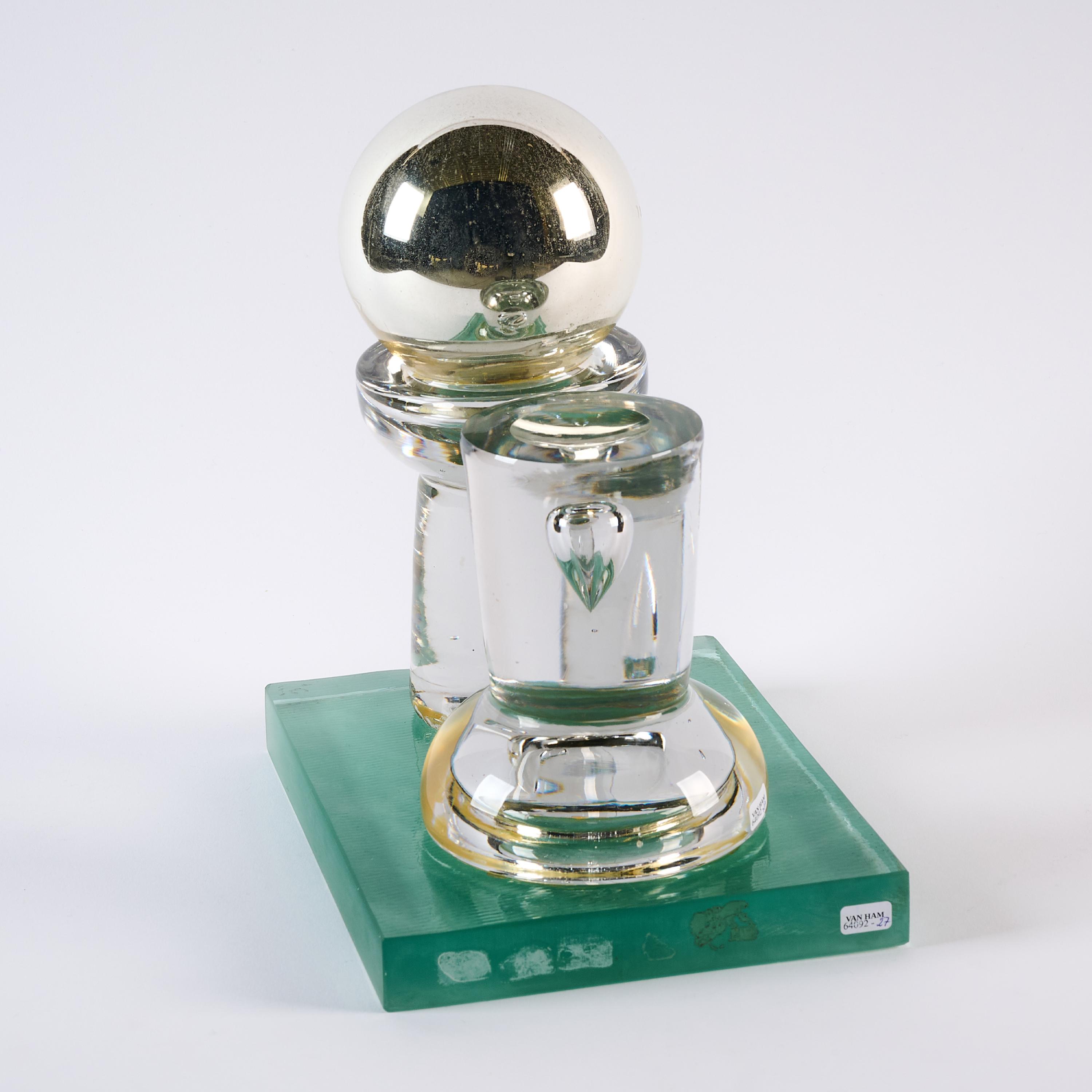 Beschreibung: Zweigliedrig auf Platte. Zylinder- und Kugelformen, teilverspiegelt.