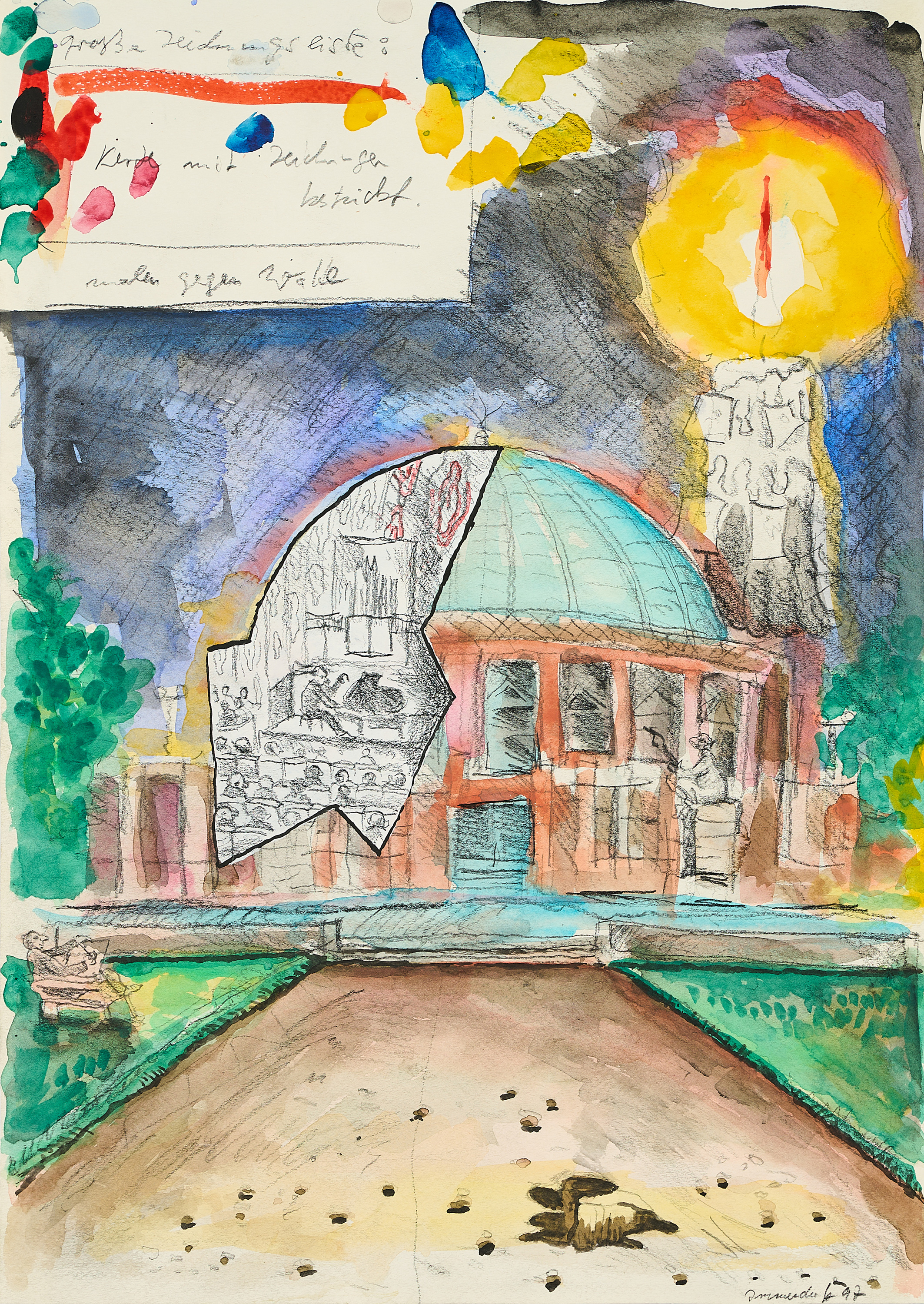Bezeichnung: Betitelt oben links: Große Zeichnungsliste. Sowie signiert und datiert unten rechts: Immendorf 97.