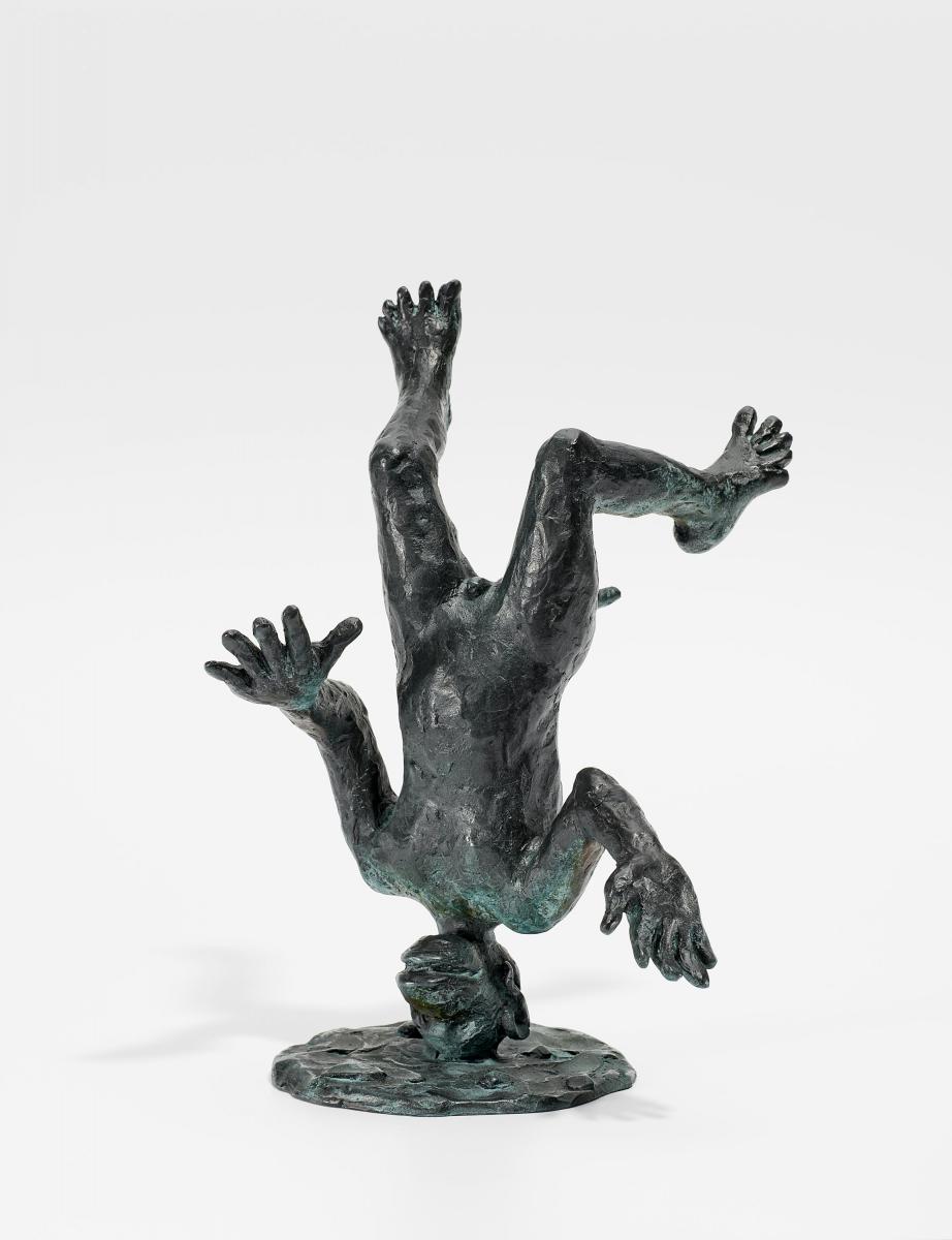 Affe auf dem Kopf stehend. Bronze, grün-schwarz patiniert. 25 x 15 x 17cm. Stempelsignatur und -nummerierung auf der Plinthe: Immendorff 9/12. Unten SCHMÄKE DÜSSELDORF. Ex. 9/12.