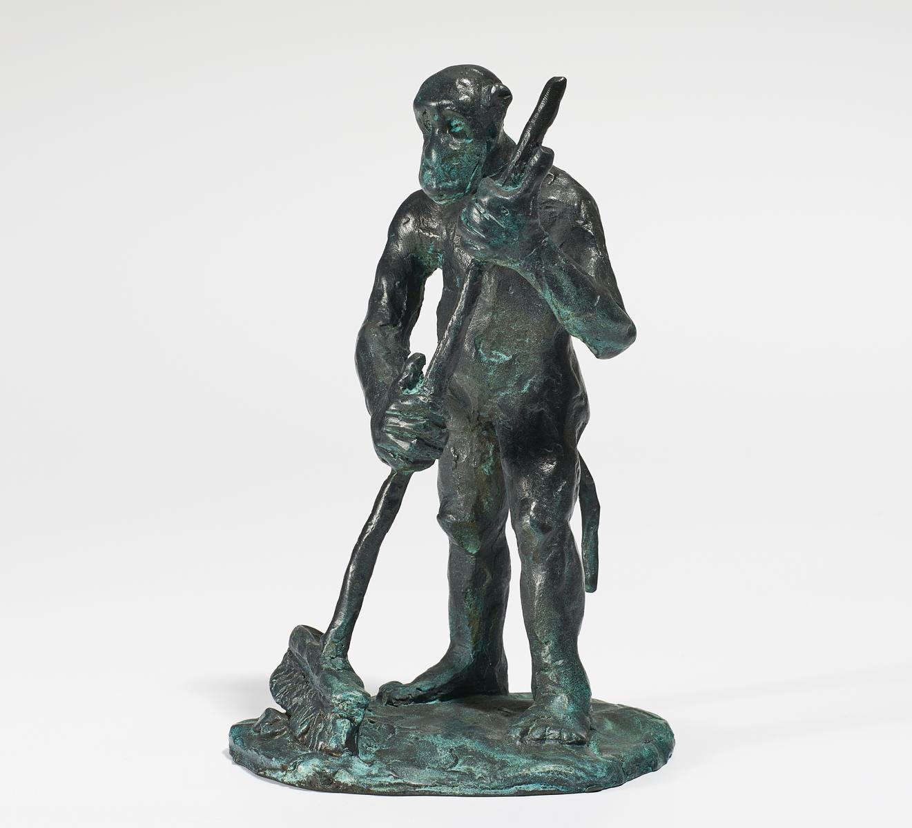 Affe mit Besen. Bronze, grün-schwarz patiniert. 18 x 11,5 x 10,5cm. Stempelsignatur und -nummerierung auf der Plinthe: Immendorff 5/12. Daneben Gießerstempel SCHMÄKE DÜSSELDORF. Ex. 5/12.