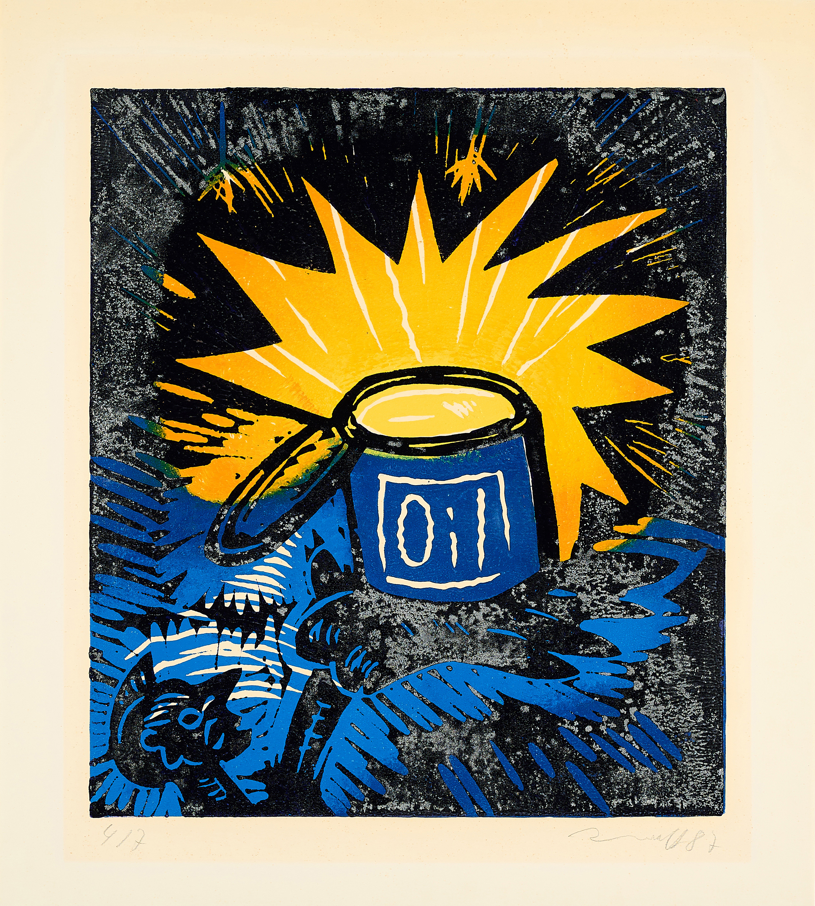 Aus der Mappe "Babel" mit ursprünglich 26 Farblinolschnitten.