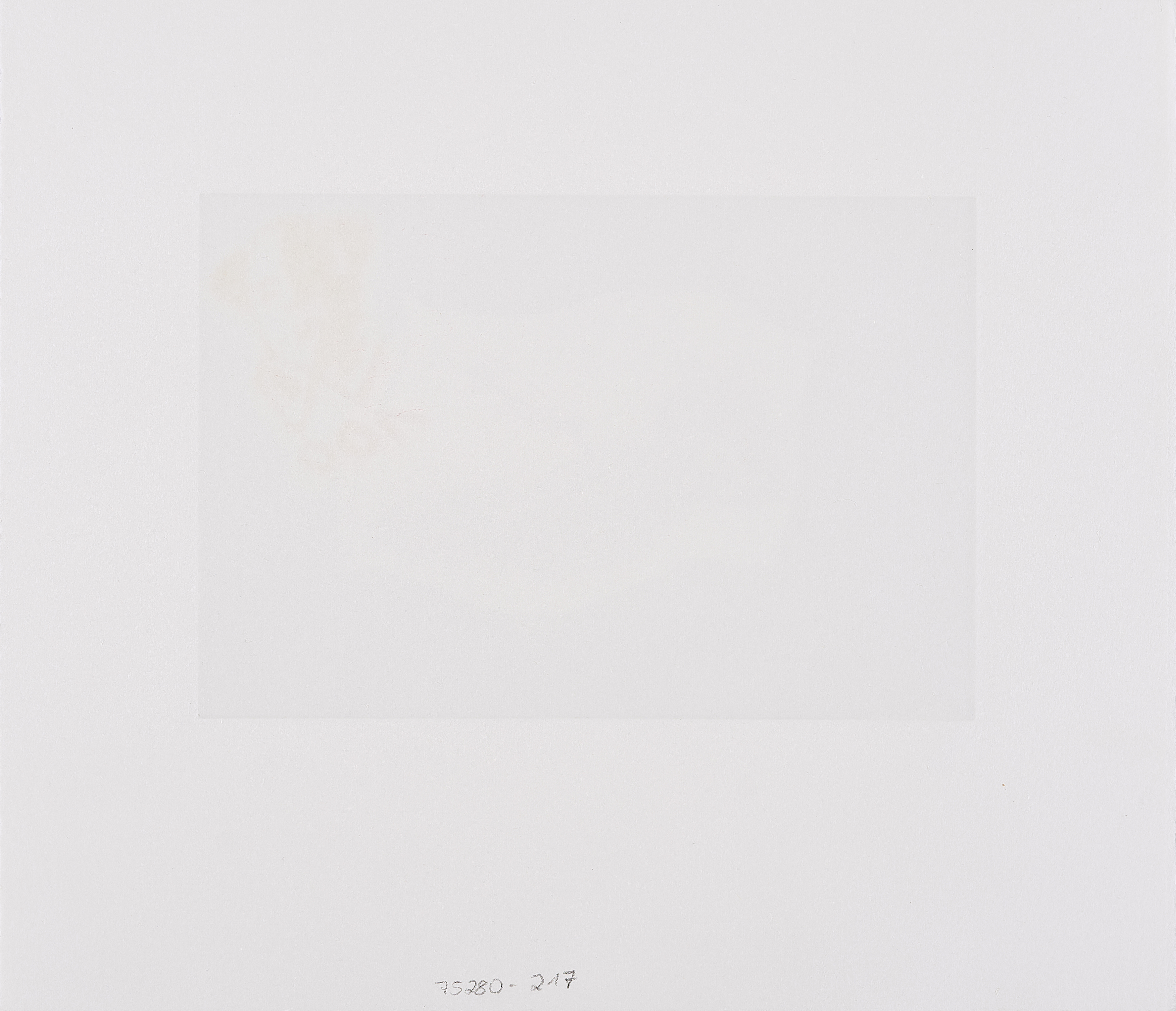 Technik: Farbradierung und Stempeldruck auf Bütten.