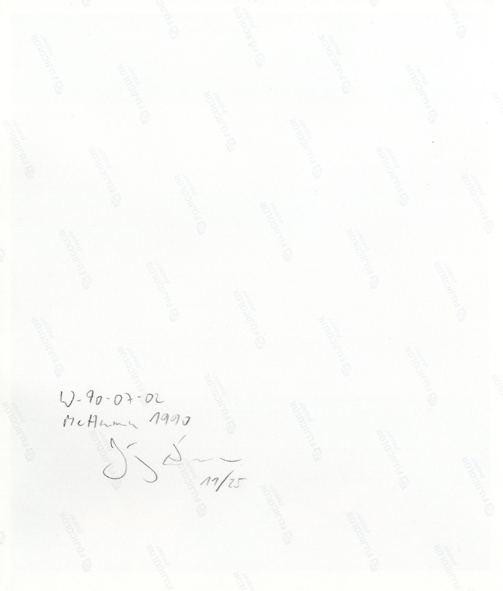"W-90-07-02". Mettmann 1990. C-Print. Auf der Rahmenrückseite Etikett mit Angaben zum Bild. Passepartout. Rahmen. (Exemplar 1/25cm). 21,8.