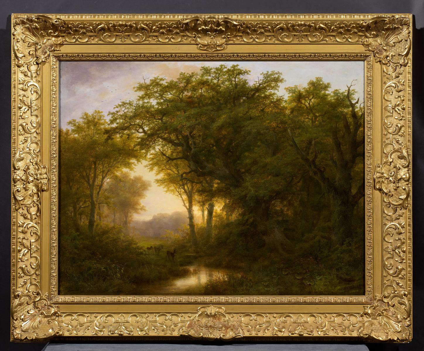 Kleve 1815 - 1893Waldlichtung bei Dämmerung. Signiert und datiert. unten rechts auf J.B. Klombeck 1873. Öl. Holz x 99 Rahmen:
