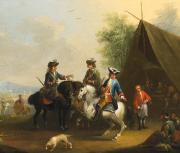 Ludwig IX mit Soldaten am Zeltlager. Öl auf Holz. 23,5 x 30,5cm. Rahmen.