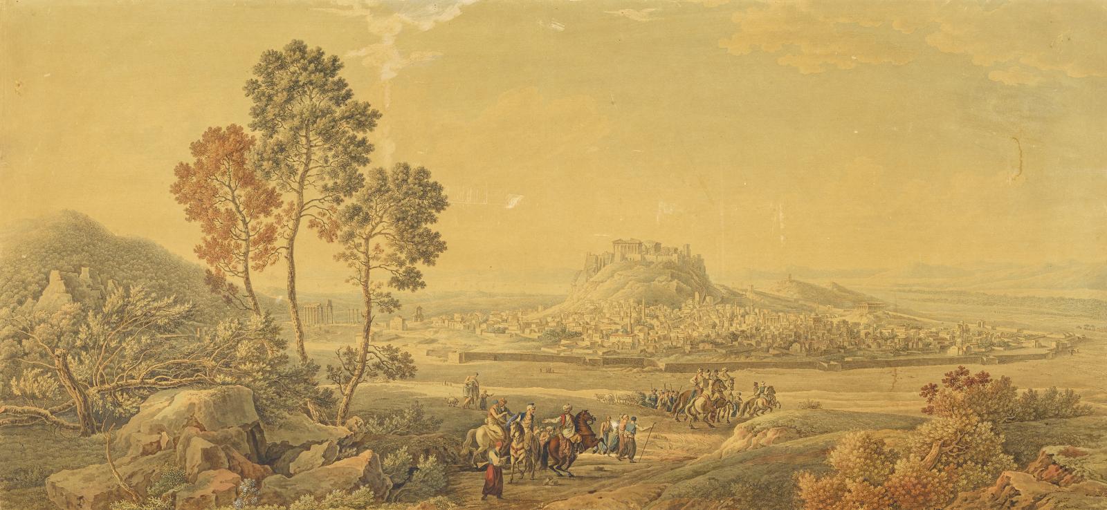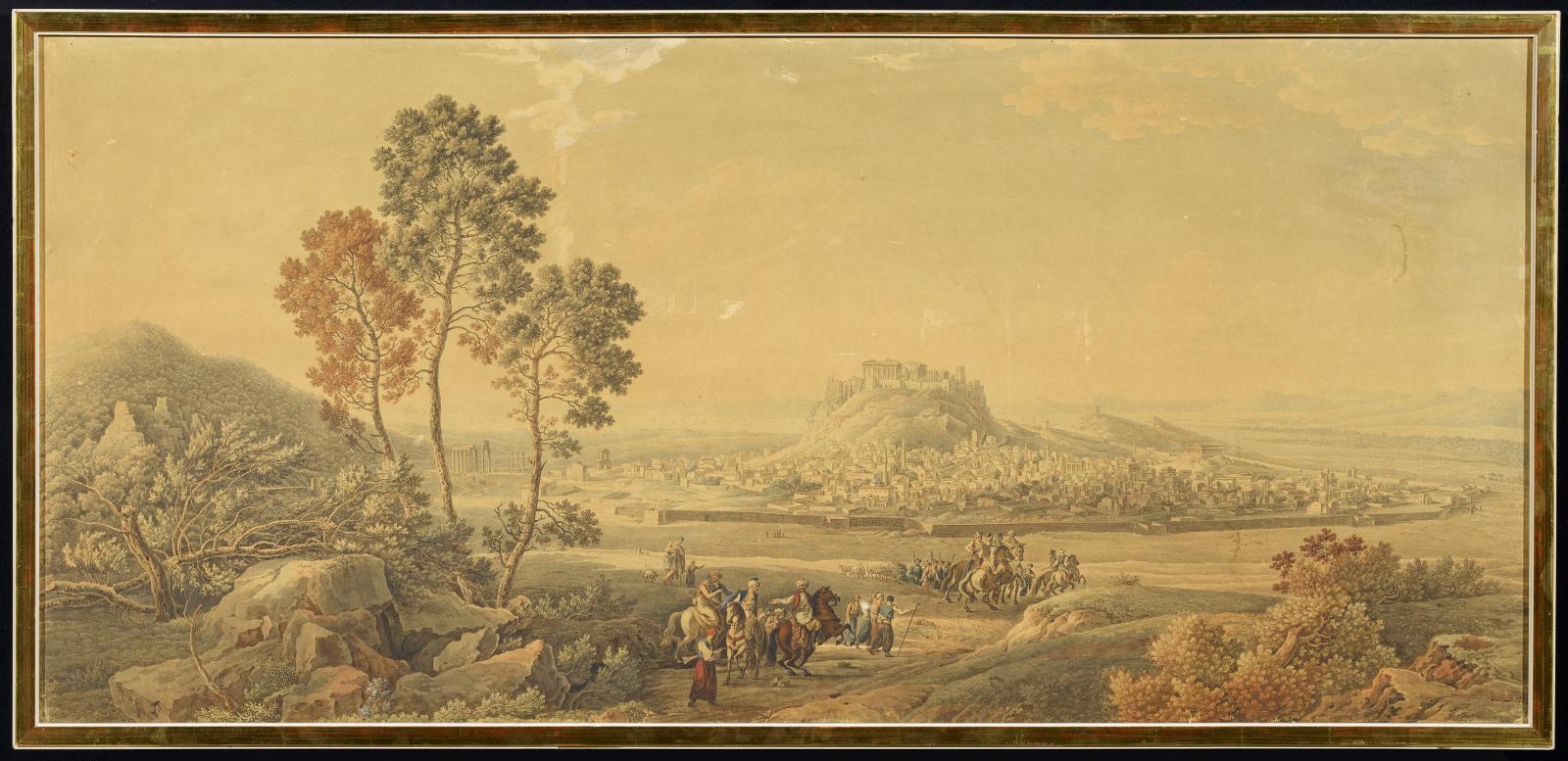 Tielker hatte sich in den Jahren vor 1800 einen Namen als Maler und Stecher großer Stadtpanoramen gemacht, arbeitete u.a. für den Berliner Hof und etablierte sich dort mit einer Kupferdruckerei. Nach Jahren im Baltikum und Russland, wo sein Panorama von St. Petersburg auf ein großes Echo traf, konnte er nach 1804 eine Gesandtschaft nach China begleiten - für die Zeit eine außergewöhnliche Reise, die sich in zwei der hier angebotenen Papierarbeiten widerspiegelt: die außergewöhnlich große Ansicht von Athen dürfte auf Eindrücke während dieser Reise zurückgehen, ebenso wie der Entwurf einer Wandausmalung mit Motiven aus China.