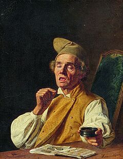 "Der Nieser" ist ein Werk, das Johann Peter Hasenclever zu großem Ruhm verhalf. Die ersten Erfolge des Künstlers waren kleinformatige Porträts von Einzelfiguren mit humorvollen Charakterisierungen: Neben dem Sujet des vorliegenden Gemäldes sind die "Betschwester", die "Milchmädchen" und der "Politiker" zu nennen. Die dargestellte Figur wird zum Opfer des satirischen Spottes des Künstlers, der sie allein, in einem privaten Moment, ohne den Schutz von Nebenfiguren, die die Aufmerksamkeit des Betrachters auf sie lenken könnten, porträtiert.