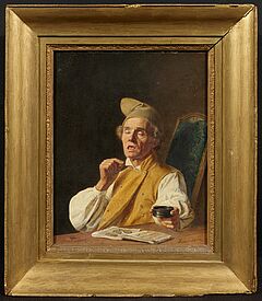 Mindestens eine weitere Version dieses Werkes ist bekannt, die am 21. April 2007 bei VAN HAM versteigert wurde. Der Künstler wiederholte erfolgreiche Prototypen mehrmals, was nicht verwunderlich ist, da er sich mit untrüglichem Einfallsreichtum und verschleiertem Humor in die Grauzonen der Moral des 19. Jahrhunderts einfügte. Im Laufe der letzten Jahre haben wir mehrere Werke von Johann Peter Hasenclever erfolgreich angeboten und verkauft. Mit dem vorliegenden Gemälde bestätigt sich VAN HAM abermals als das Referenzhaus für diesen Künstler und die deutsche Malerei des 19. Jahrhunderts.