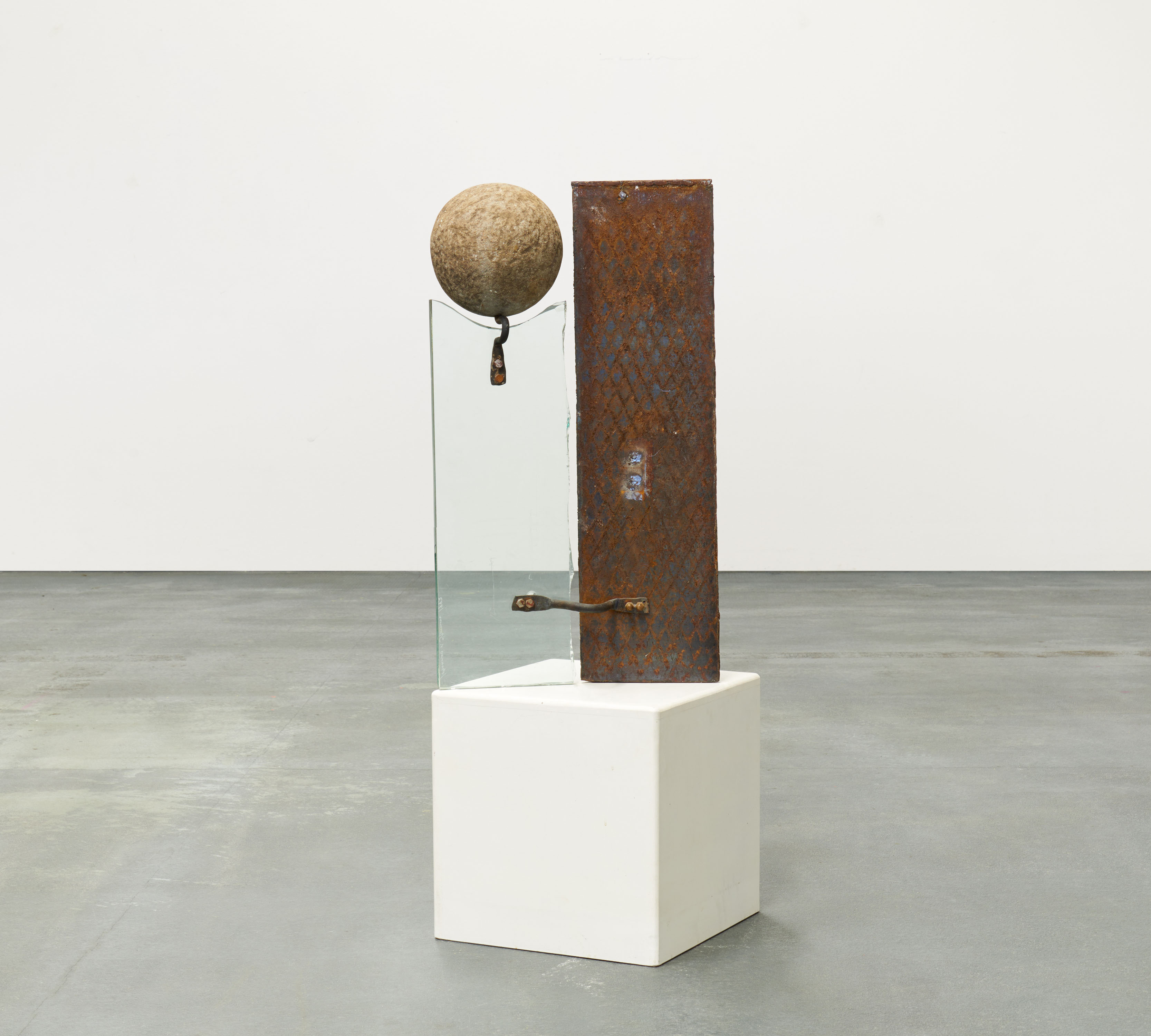Technik: Granitkugel auf Glasplatte mit Bronze.