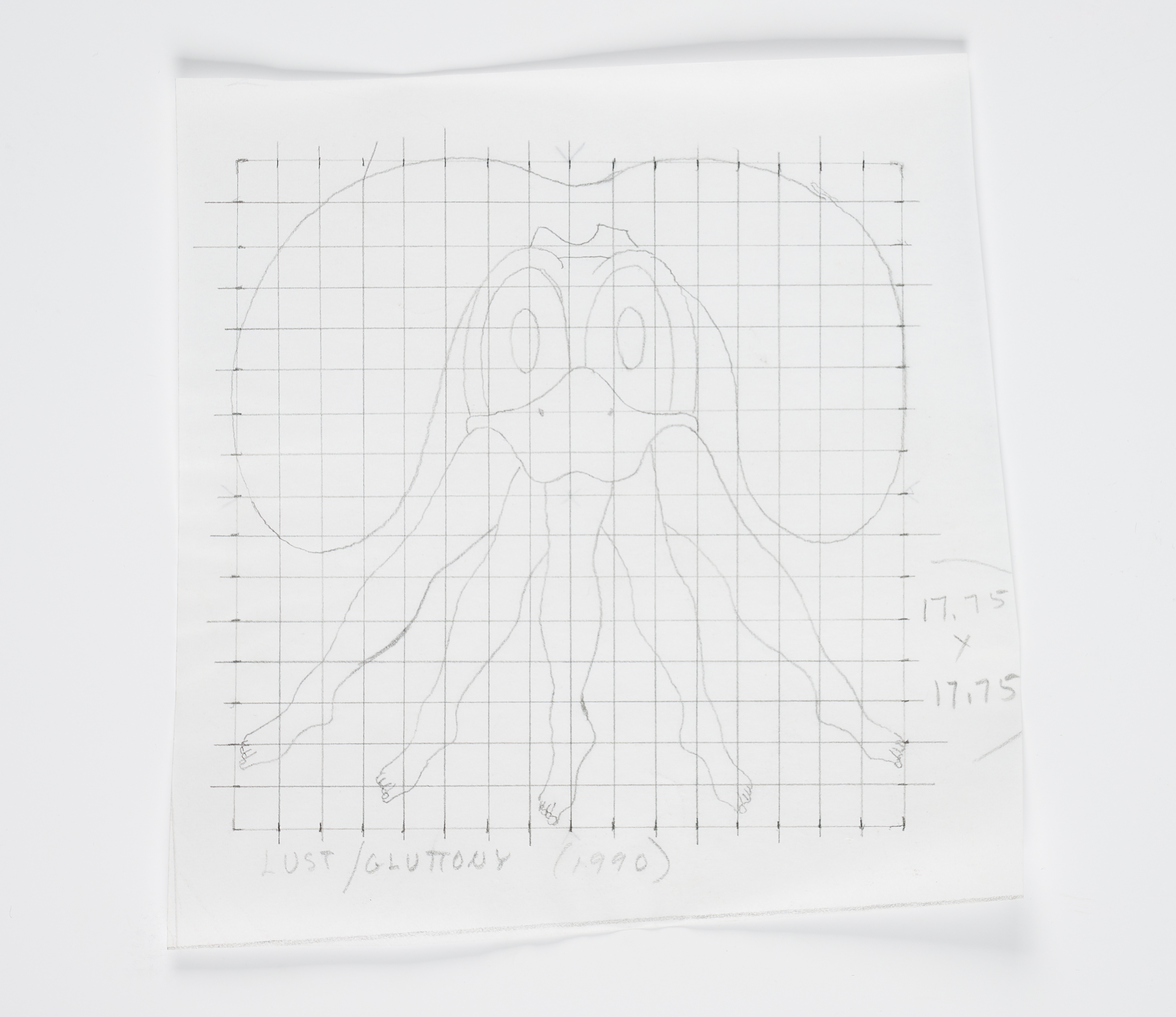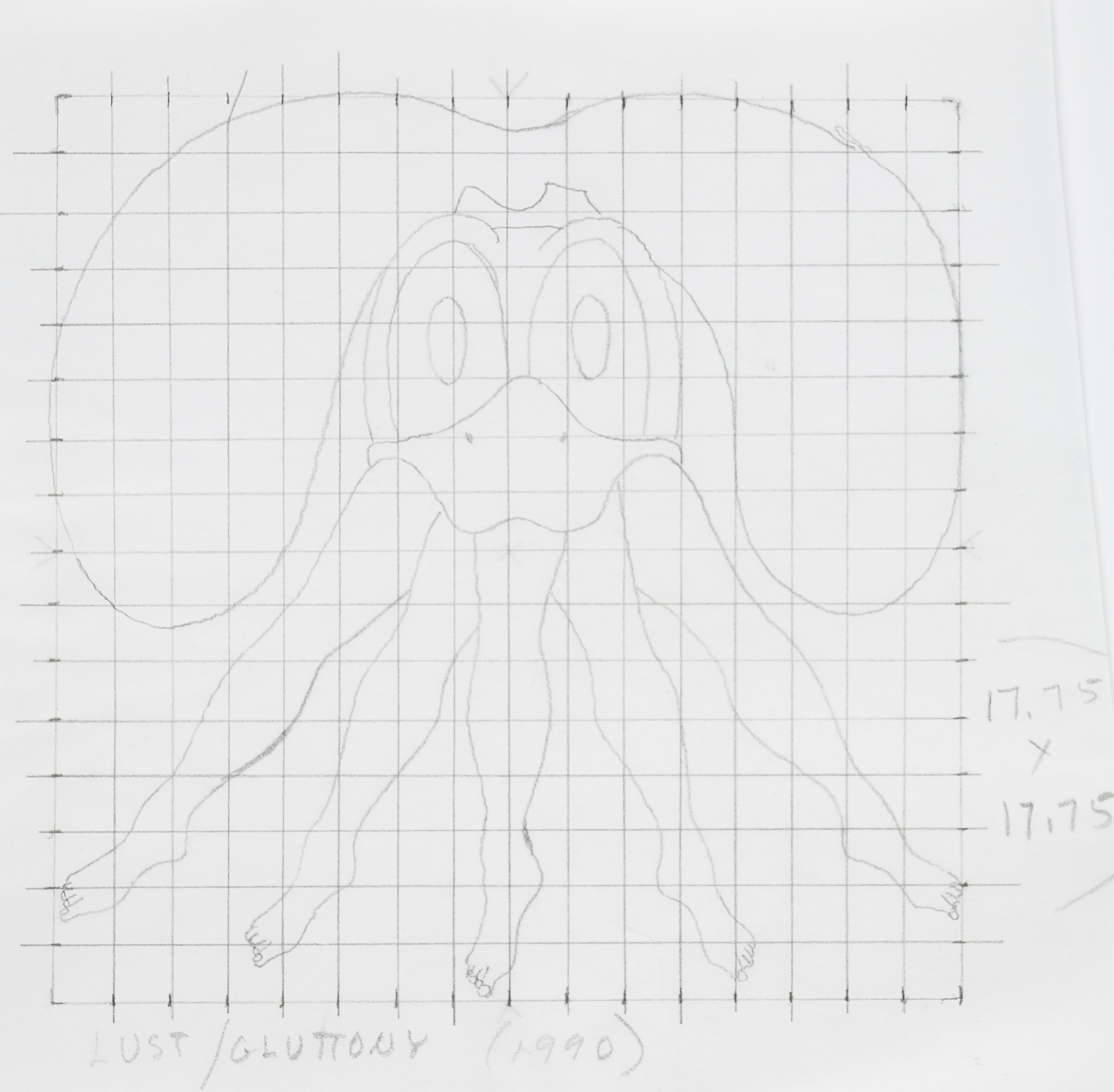 Bezeichnung: Betitelt und datiert unten links: LUST / GLUTTONY (1990). Sowie bezeichnet rechts am Rand: 17.75 x 17.75.