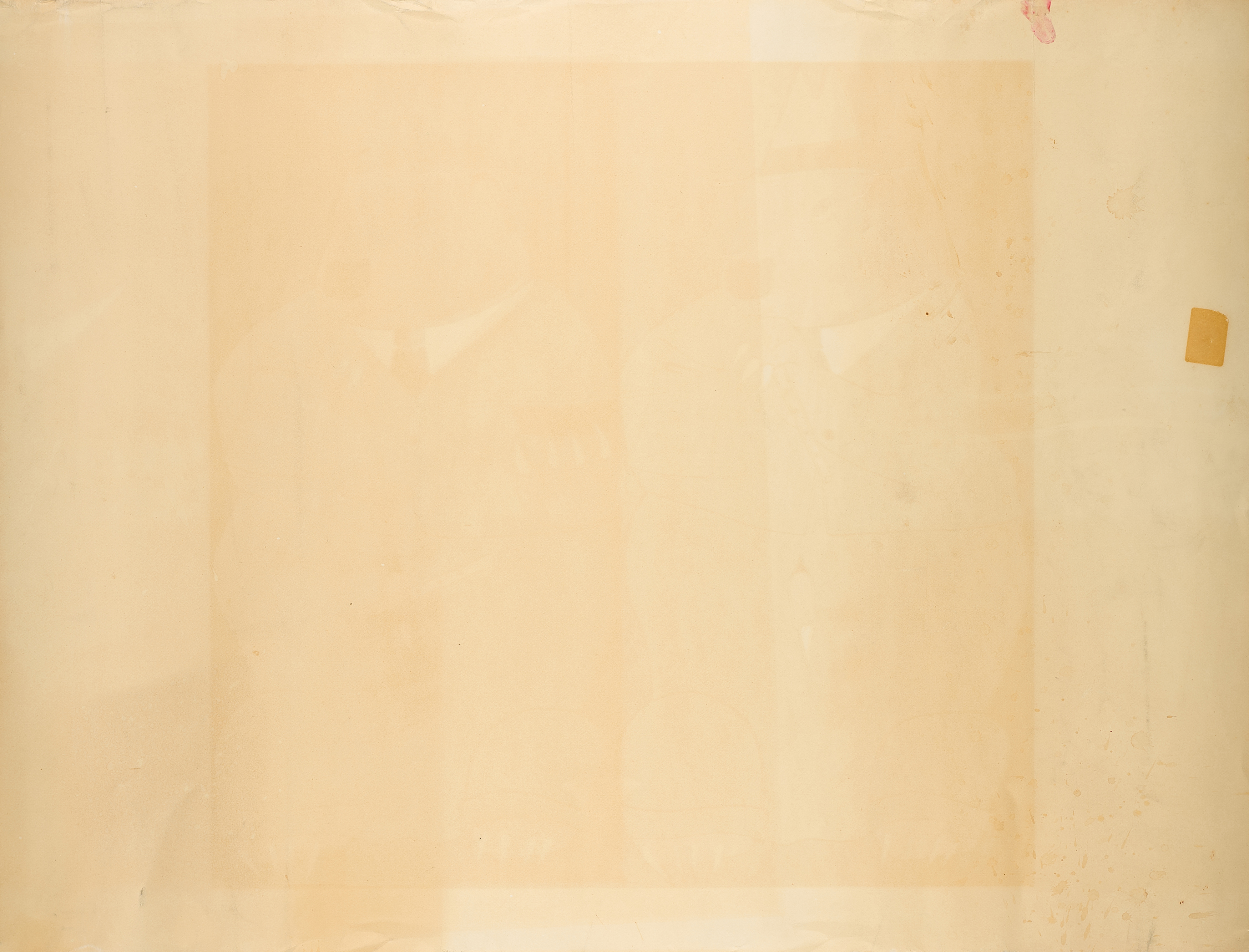 Blatt unfrisch sowie unregelmäßig gebräunt (ehemaliger Passepartoutausschnitt sichtbar). Wasserflecken im unteren rechten Eckbereich. Leichte Griff- bzw. Knickspuren. Minimale Bestoßungen der Kanten. Kleinere Verschmutzung im Druckbereich rechts.