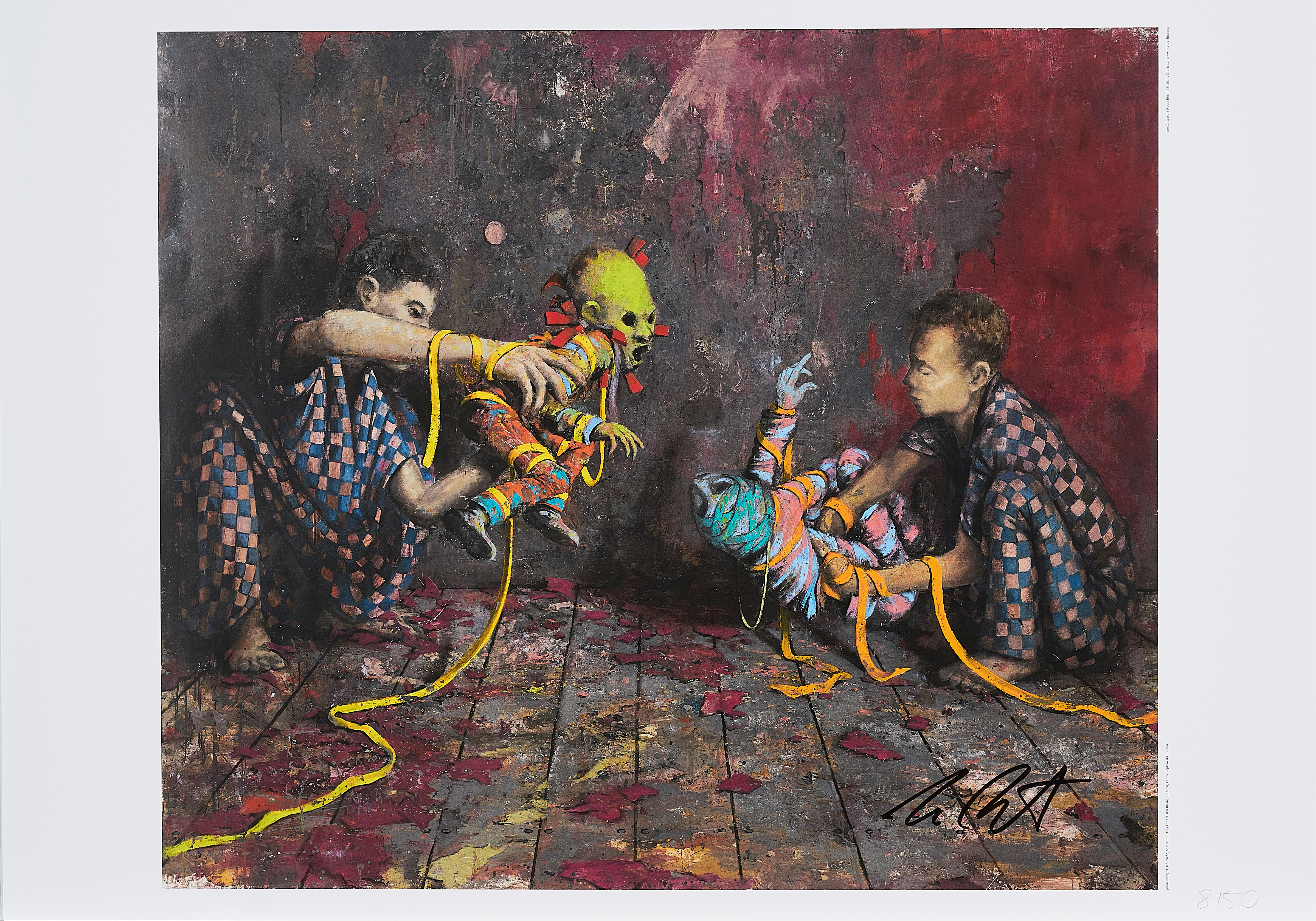 Technik: Farbiger Offset auf leichtem Offsetkarton.