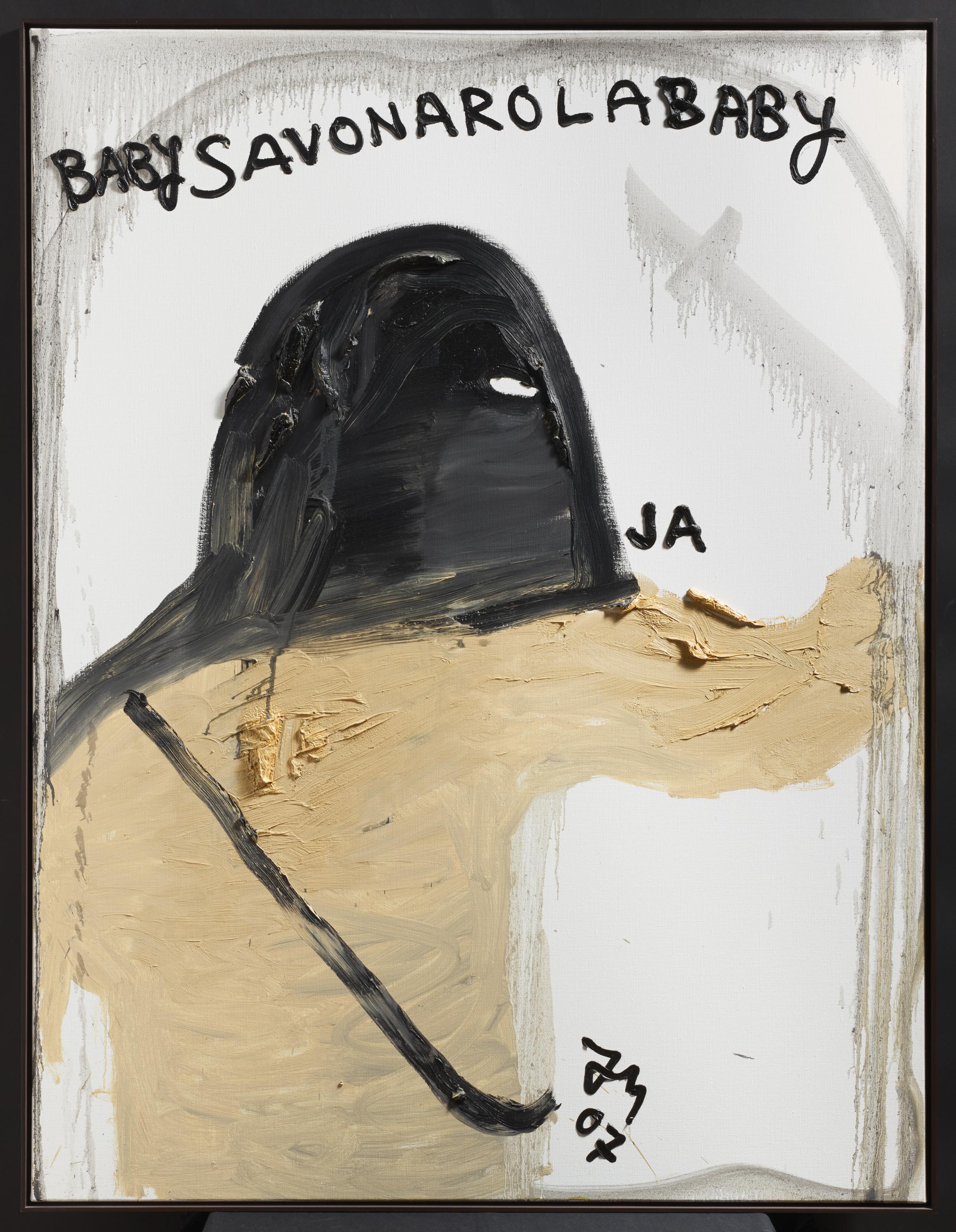 Bezeichnung: Monogrammiert und datiert unten rechts: JM 07. Zudem verso oben auf der Leinwand signiert, datiert und betitelt: J Meese 07 DU BIST SÜSSER ALS STROH. Verso auf dem Keilrahmen mit Werknummer versehen: MEE/M 1449.
