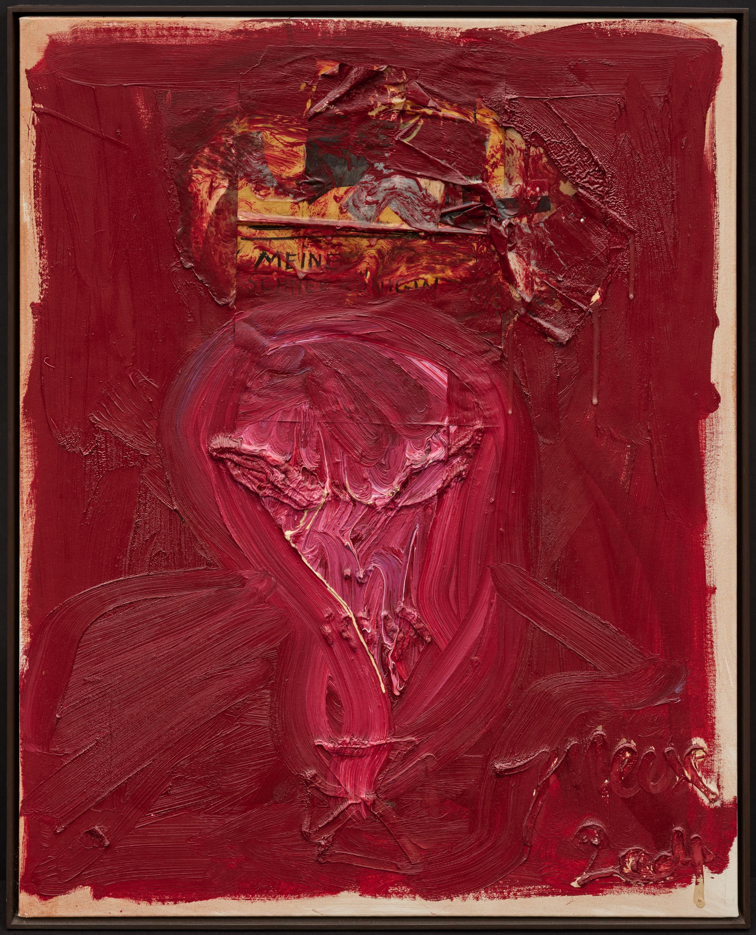 Bezeichnung: Signiert und datiert unten rechts: JMeese 2004. Sowie betitelt, signiert und datiert verso: "Ich, der rote Gurkenlutscher (Dr. Rotzebeetea)" (eingekreist) JMeese 2004.