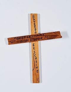 Technik: Holzleisten, Nägel, handschriftlicher Zusatz.
