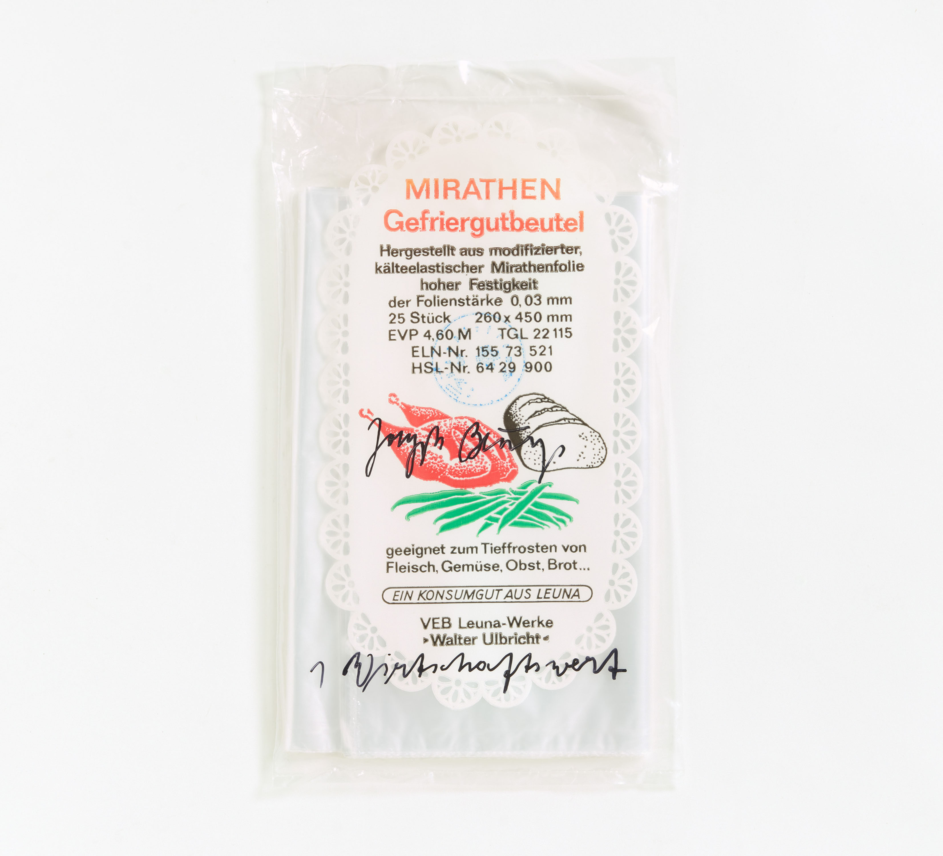 Technik: Plastiktütchen mit Gefrierbeutel, mit handschriftlichem Zusatz: 1 Wirtschaftswert und gestempelt: Hauptstrom.